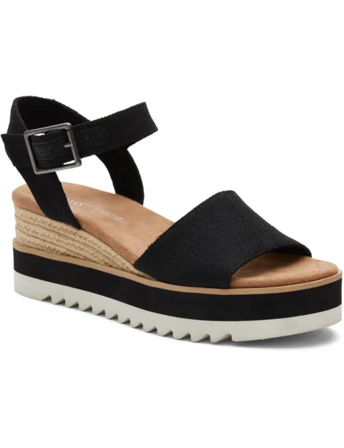 Toms Canvas Buckle Ankle Strap Wedge Espadrilles