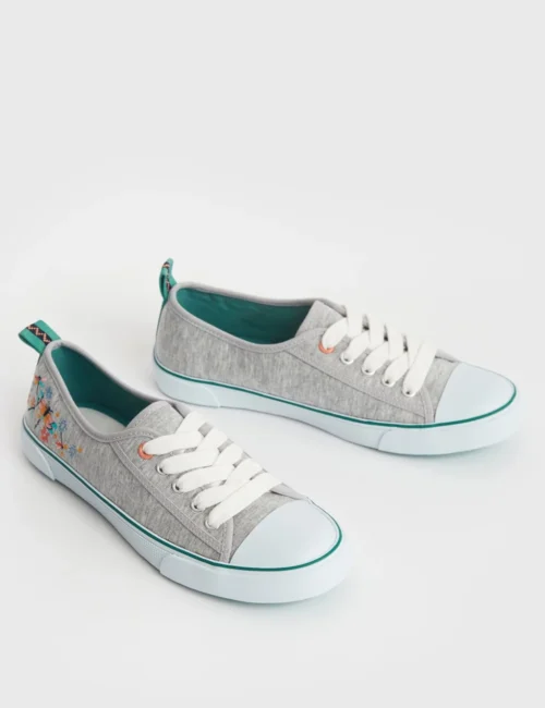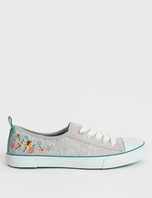 WHITE STUFF Canvas Embroidered Flat Pumps
