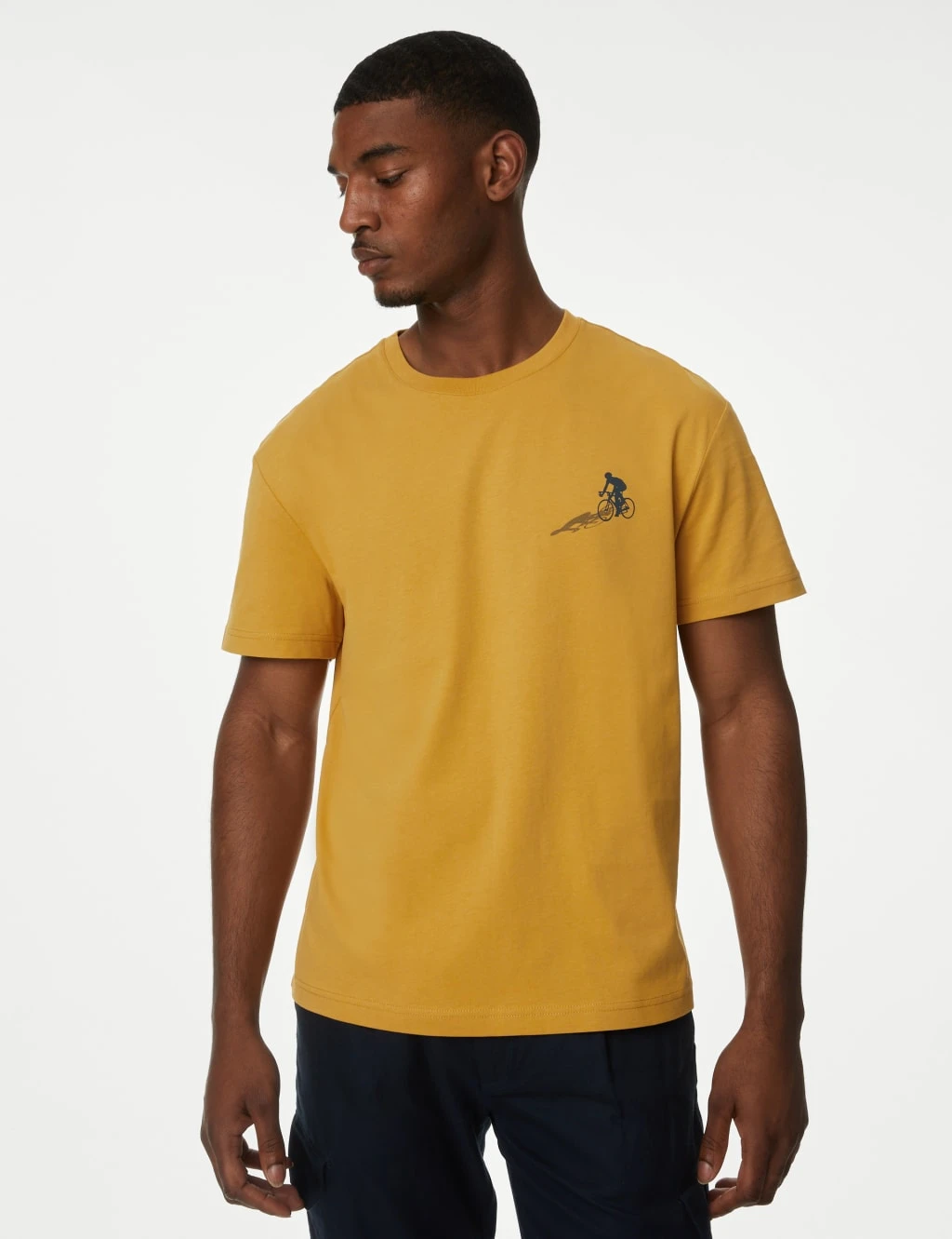 Two-wheel transport fans can pedal in style in this pure cotton t-shirt. Made to a comfy regular fit, with a dynamic chest graphic showcasing a racing cyclist. M&S Collection: easy-to-wear wardrobe staples that combine classic and contemporary styles.