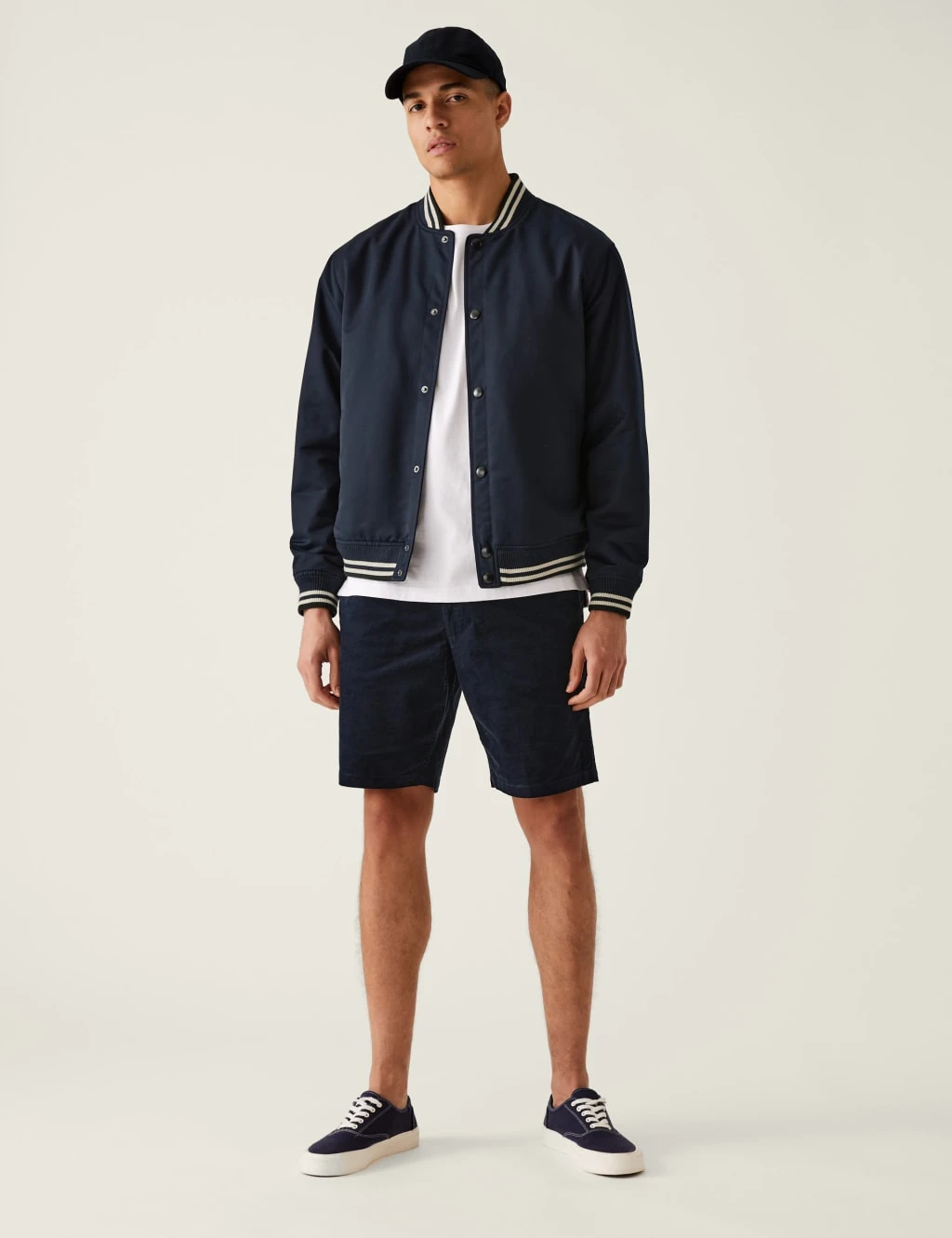 Enjoy the warmer weather in comfort and style in these cotton-rich needlecord shorts. Added stretch means they move with you. Elasticated waist and a button-and-zip fastening ensure easy wearing. Handy side pockets to hold your everyday essentials.
