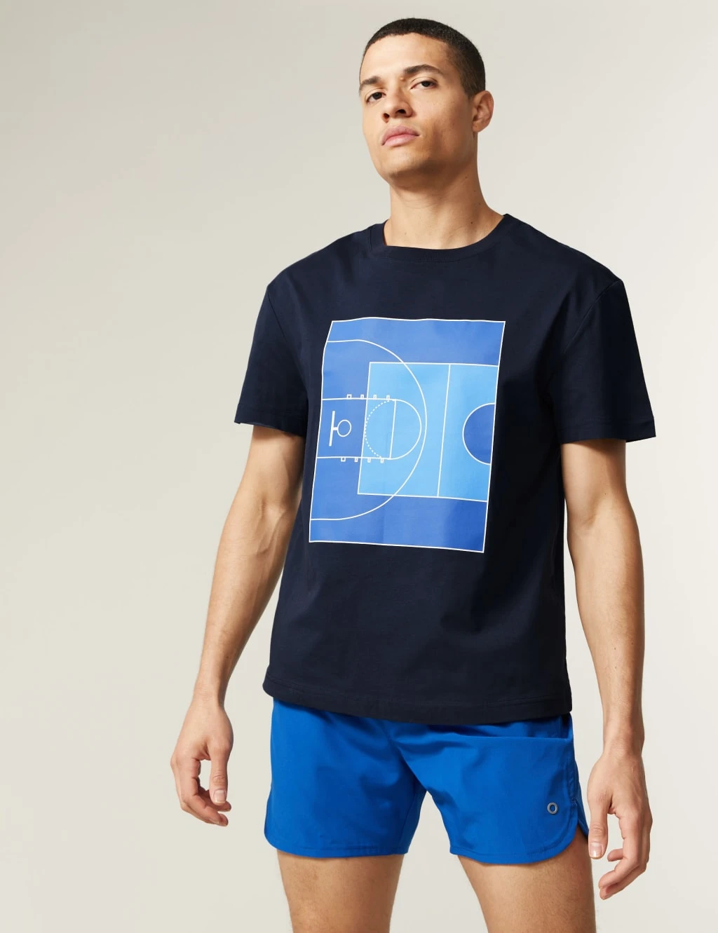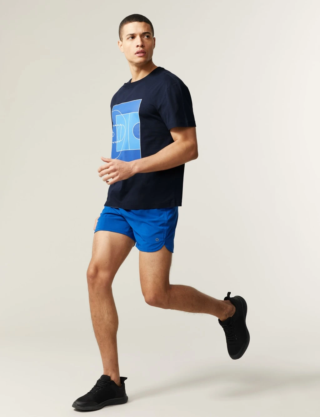 Keep it casual in this classic pure cotton short sleeve t-shirt. Regular fit design, with a neat crew neck. This sports court inspired graphic print adds a bold feel.