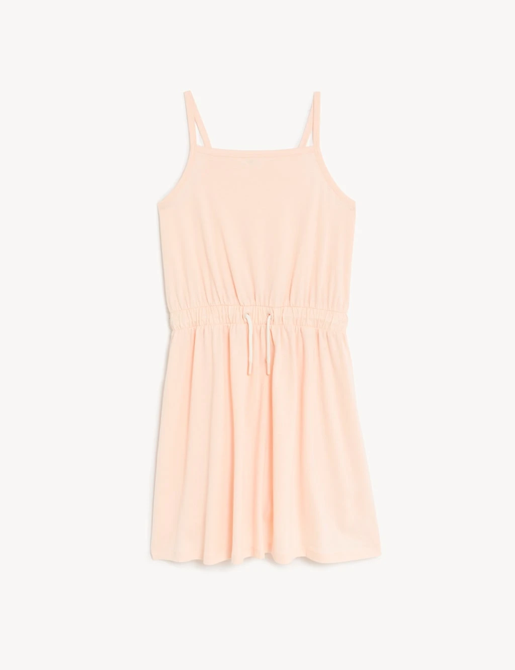 This pure cotton dress is the perfect casual piece for warmer weather. The sleeveless design has a comfy regular fit with a square neckline. An adjustable drawstring on the waistband gives it a laid-back look.