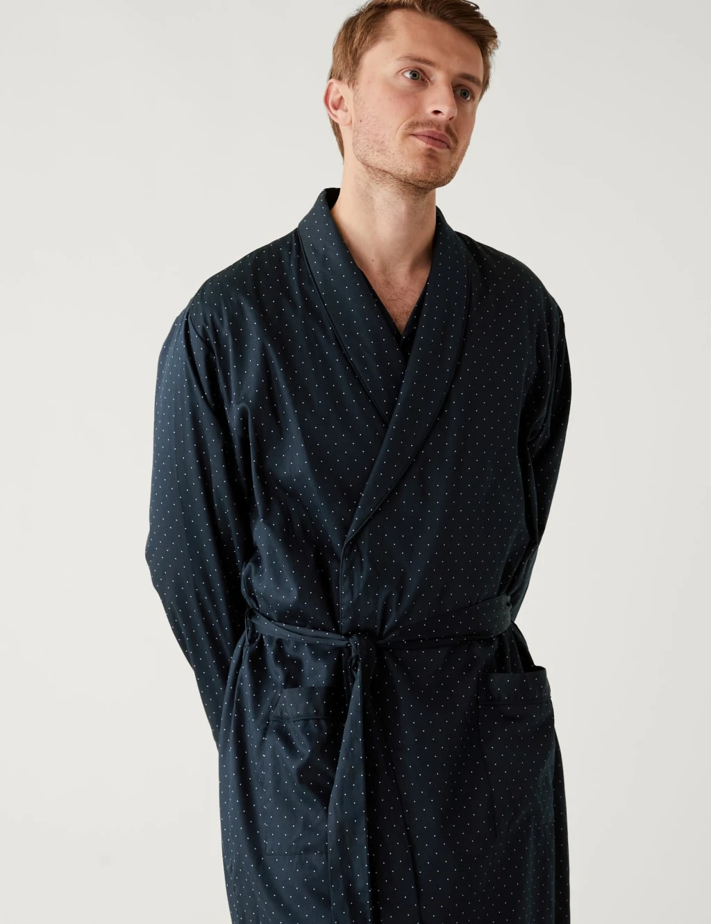 Go for a classically stylish nightwear option with this polka dot dressing gown. It features a tie belt fastening and is made from pure cotton with Stay Soft technology, with means it keeps its soft feel wash after wash. We only ever use responsibly sourced cotton for our clothes.