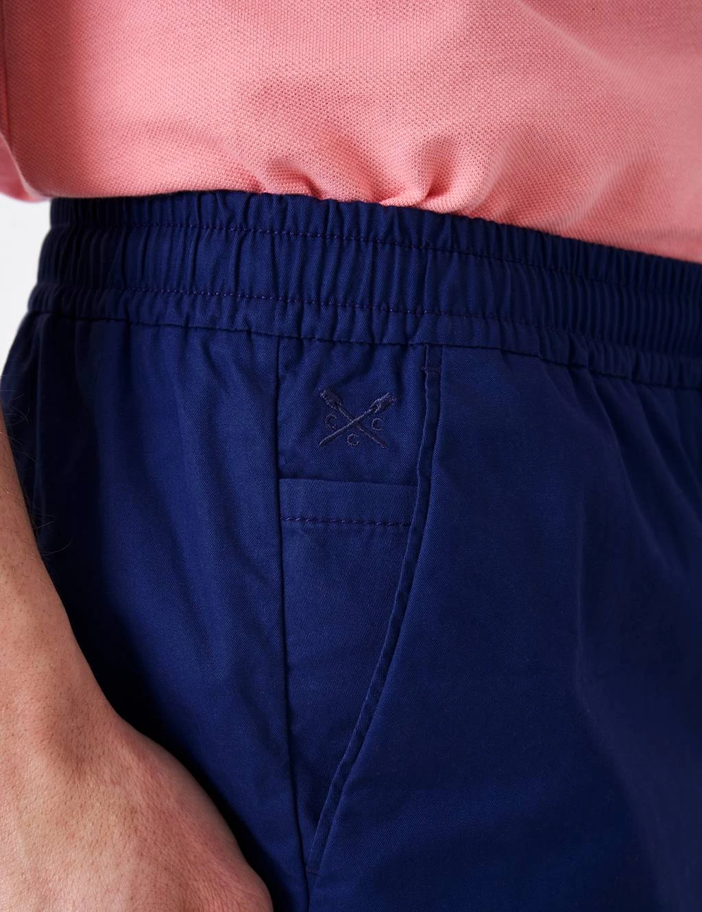 These pure cotton chino shorts from Crew Clothing are the perfect choice for laid-back sunny days. They’re cut in a regular fit with a comfortable elasticated waist secured by a drawstring tie. Two handy side pockets, plus two further pockets at the back, provide room for your essentials. The embroidered crossed-oars logo at the hip gives a signature finish.