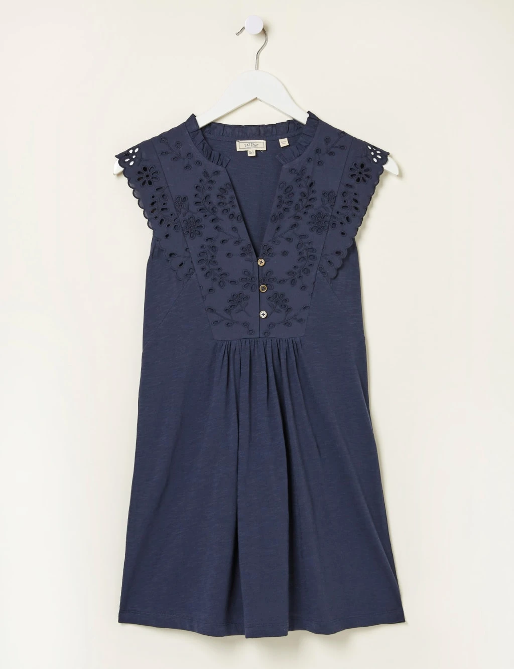 For a polished look, turn to this elegant pure cotton tunic from FatFace. It’s designed in a regular fit, with a summer-ready sleeveless silhouette and a flattering longline cut. For a stylish finish, its notch neckline is detailed with a three-button fastening and surrounded by intricate floral embroidery.