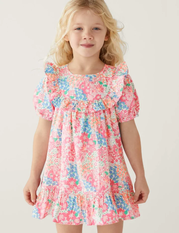 Pure Cotton Floral Frill Dress (2-8 Yrs)