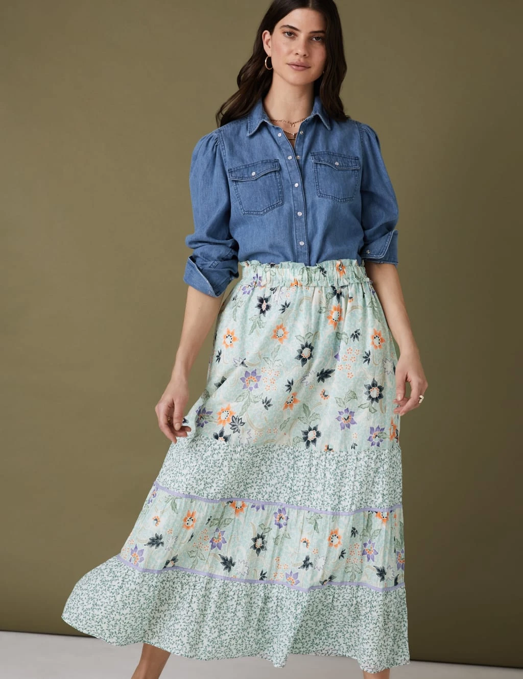 Create an effortless summery look with this pure cotton maxi skirt from our Per Una collection. Cut in an easy regular fit, the flattering style features a comfortable elasticated high waistband and handy side pockets. Pretty floral patterns complete the tiered design.