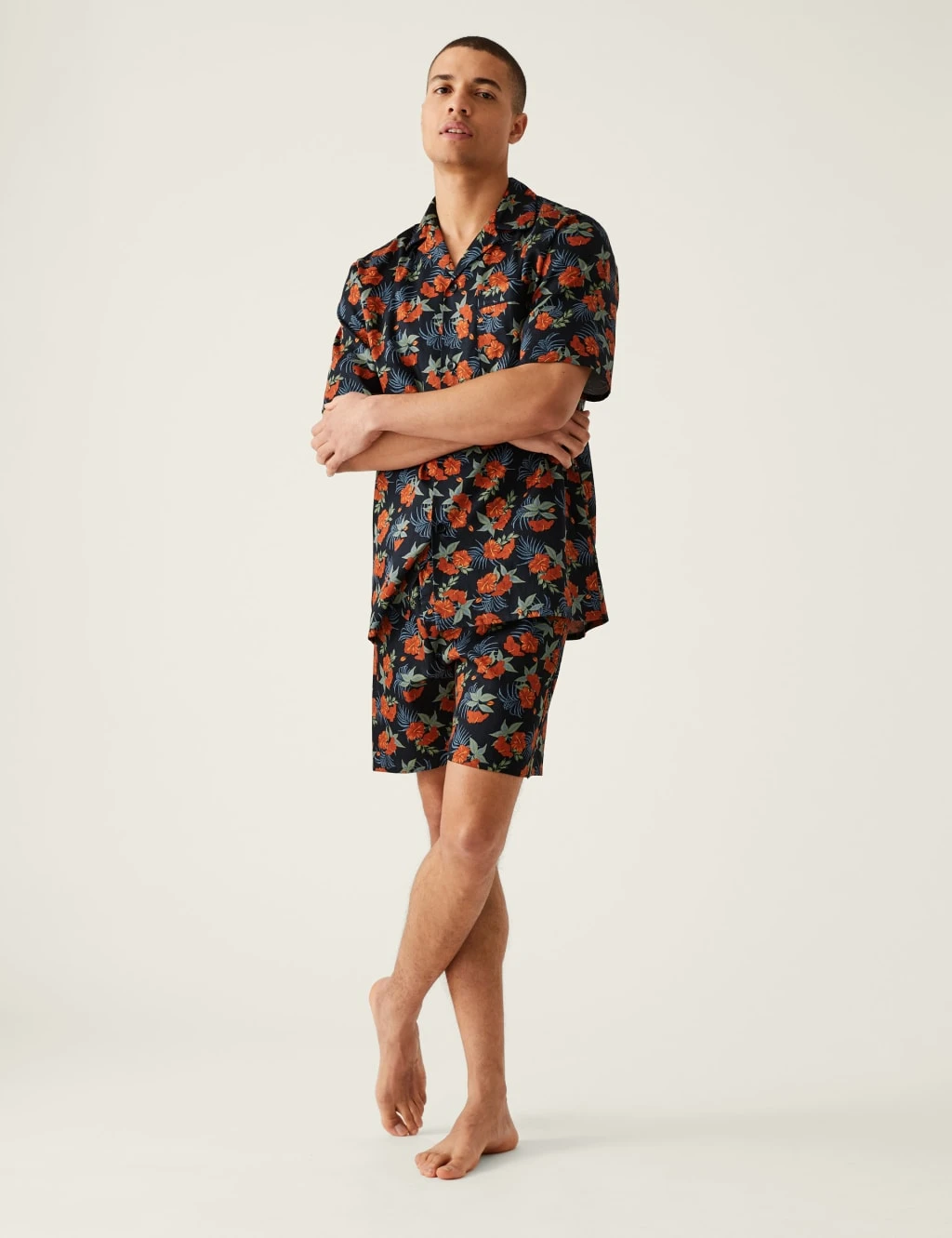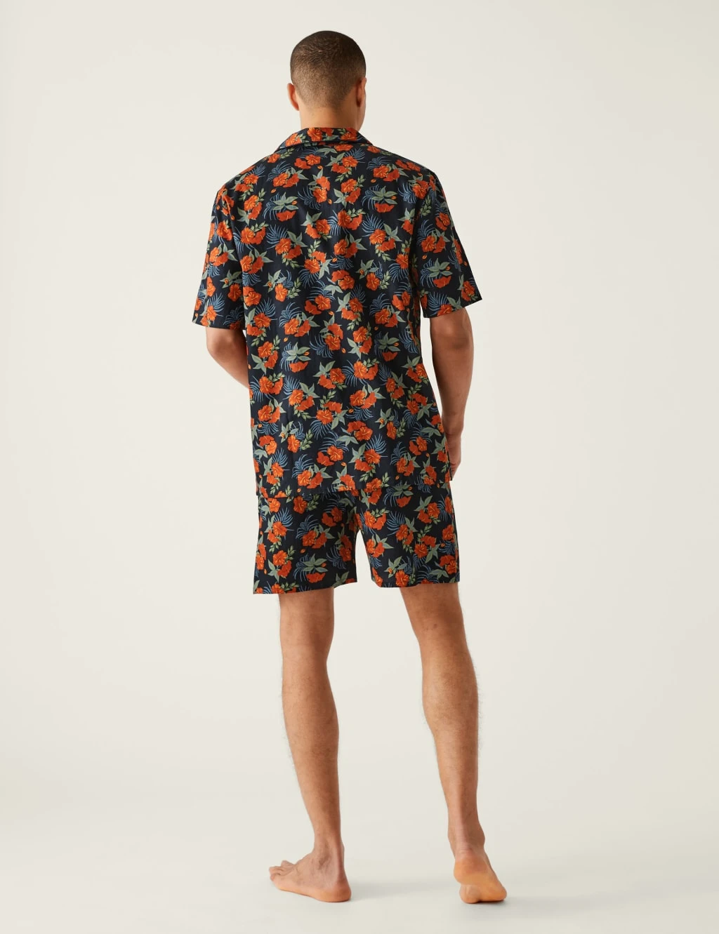 Bring some brightness to your evenings with these pure cotton pyjamas, decorated with tropical florals. Classic regular fit set includes a button-through, short-sleeved shirt with a classic chest pocket. The shorts feature an elasticated waist for comfort and a convenient button fly.