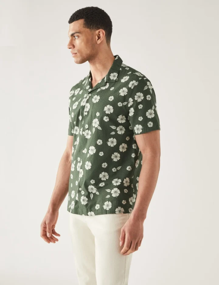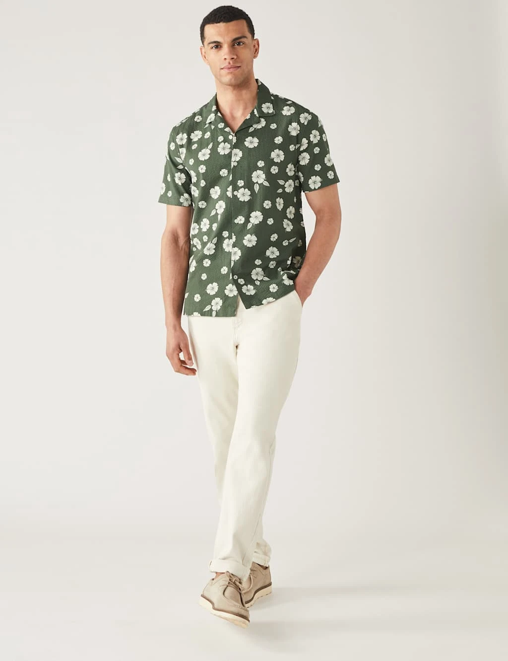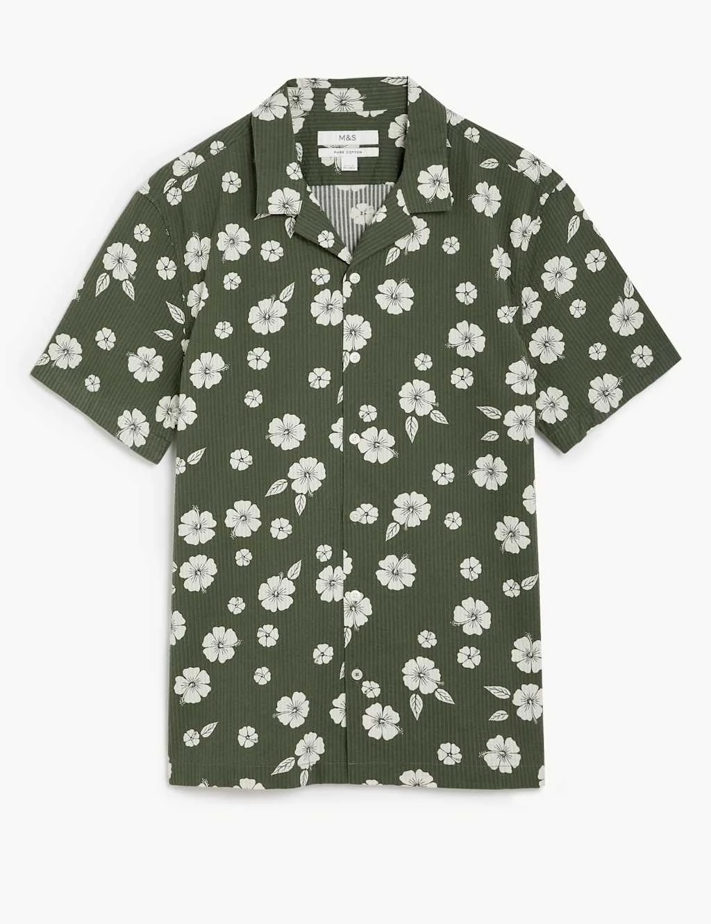 Make an immediate impact in this pure cotton seersucker shirt with its bold hibiscus print. Comfy regular fit. Revere collar adds a stylish touch. Easy-to-iron finish means it needs just a quick press to be ready to wear.