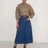 Pure Cotton Geometric Midaxi A-Line Skirt