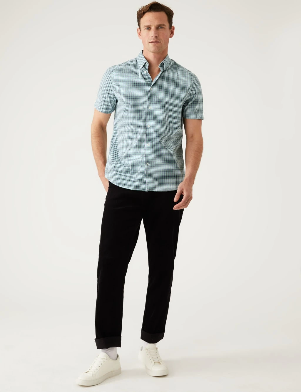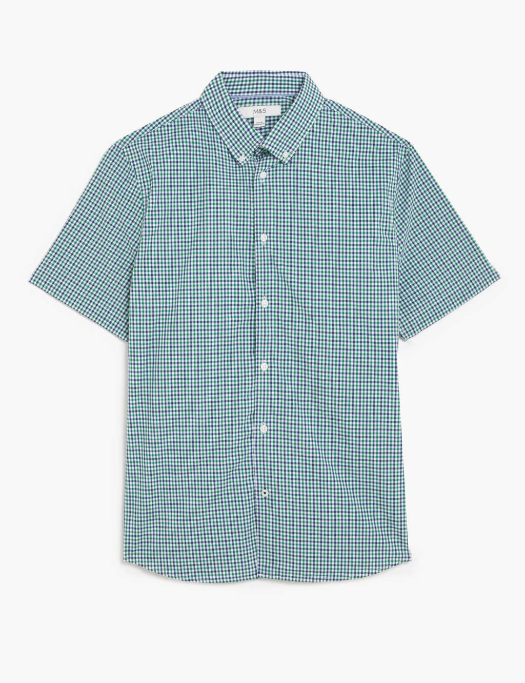Make your smart look pop with this colourful gingham shirt, made from breathable pure cotton. It’s cut to a regular fit, with a neat button-down collar and breezy short sleeves. The easy-iron finish allows you to quickly press it and go.