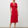 Pure Cotton Gingham V-Neck Midi Tea Dress