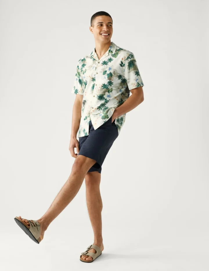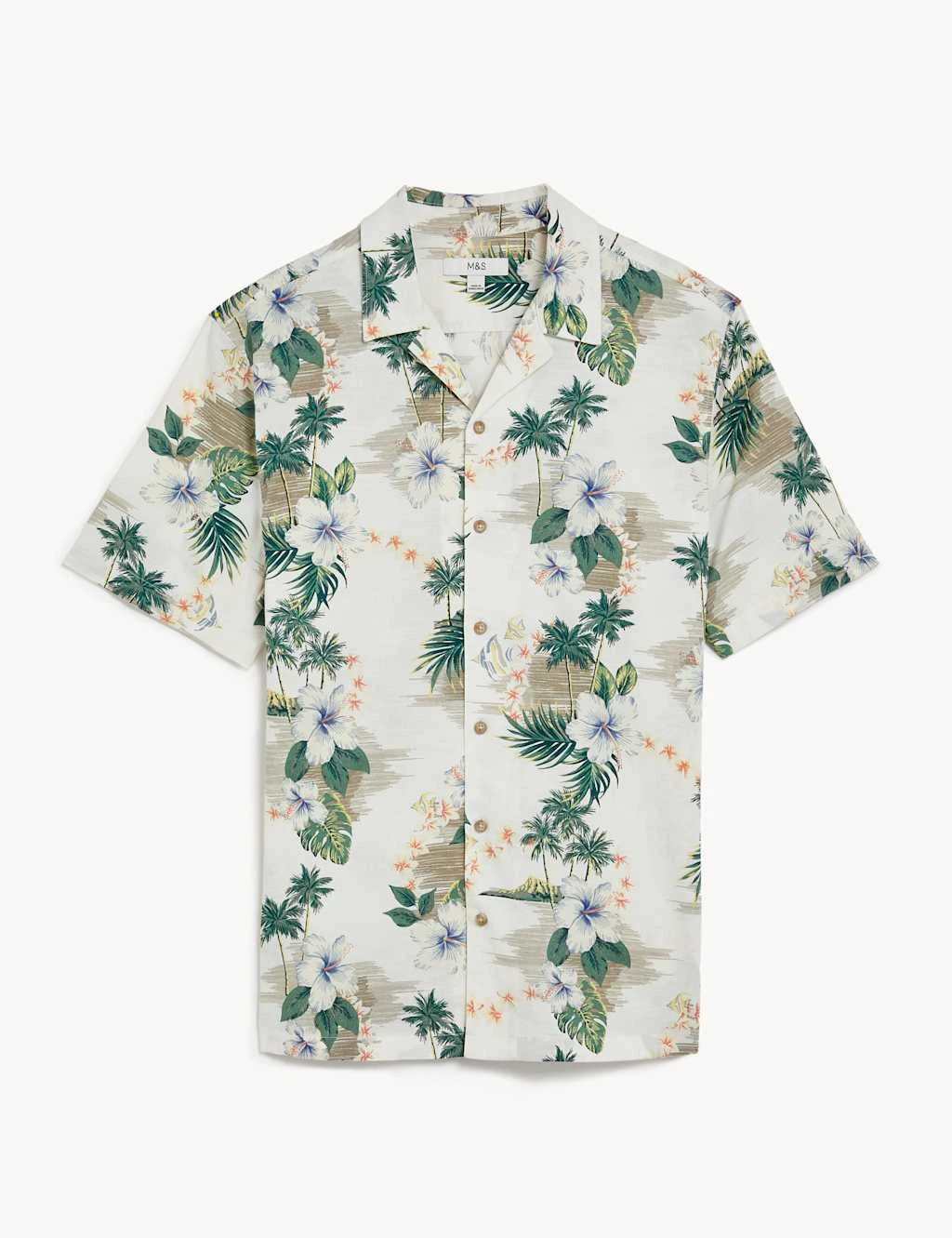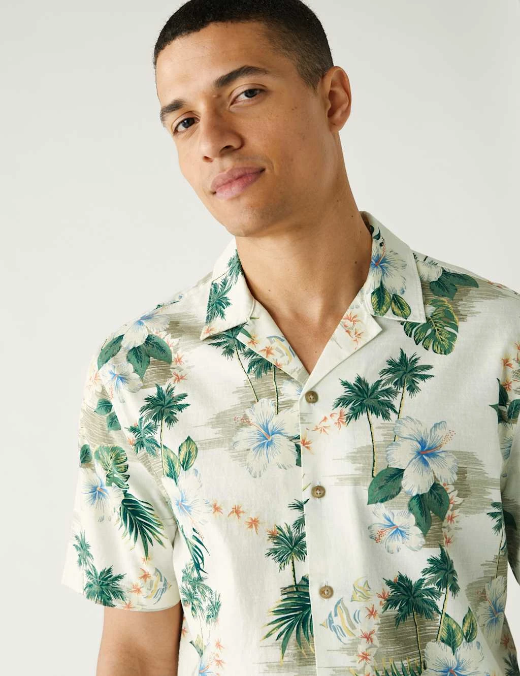 Get into the holiday mood with this Hawaiian shirt, crafted from pure cotton with a lightly textured slub finish. Designed in a comfy regular fit, with a relaxed revere collar and button-down front. The easy-care fabric makes it a breeze to iron and features a tropical print of palm trees and hibiscus flowers. M&S Collection: easy-to-wear wardrobe staples that combine classic and contemporary styles.