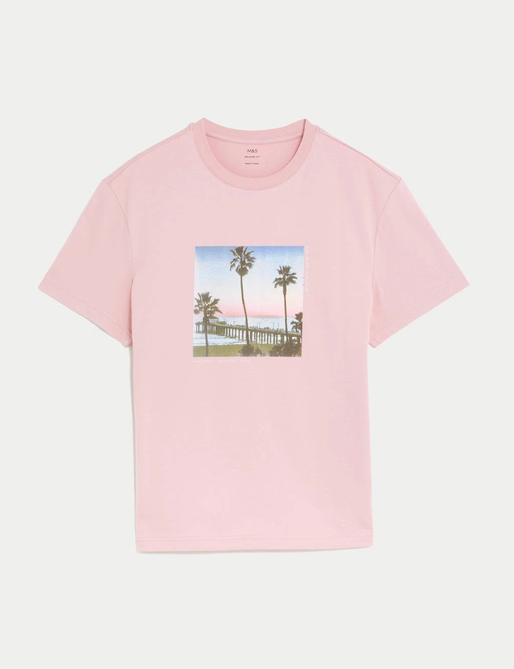 Get into the holiday mood with this mid-weight pure cotton palm tree graphic t-shirt. Made to a comfy relaxed fit with a classic crew neck. Evocative artwork features a tropical sunset scene above the words ‘California – Manhattan Beach.’M&S Collection: easy-to-wear wardrobe staples that combine classic and contemporary styles.
