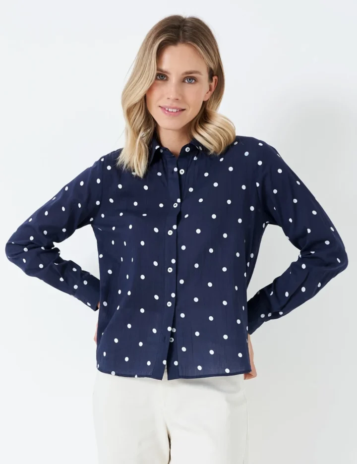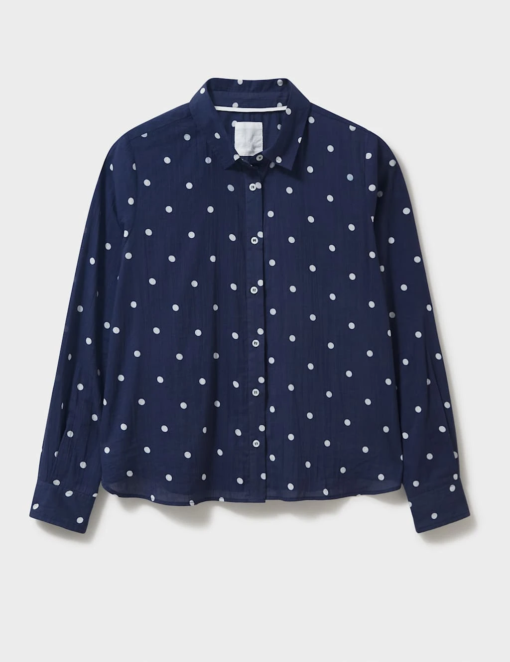 This pure cotton shirt from Crew Clothing brings versatility to your year-round wardrobe. It’s made in a regular fit with a classic collared neck and long, button-cuff sleeves. This floaty piece features a playful polka dot print and fastens with branded buttons for a signature touch.
