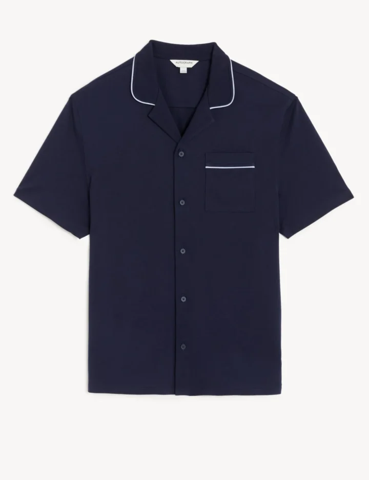 Crafted from pure cotton, this pyjama shirt from our Autograph collection is perfect for cosy evenings and long mornings indoors. It comes in a comfy regular fit with short sleeves and a neat chest pocket. This button-through style is complete with premium piping on the collar and pocket for a traditional finish.