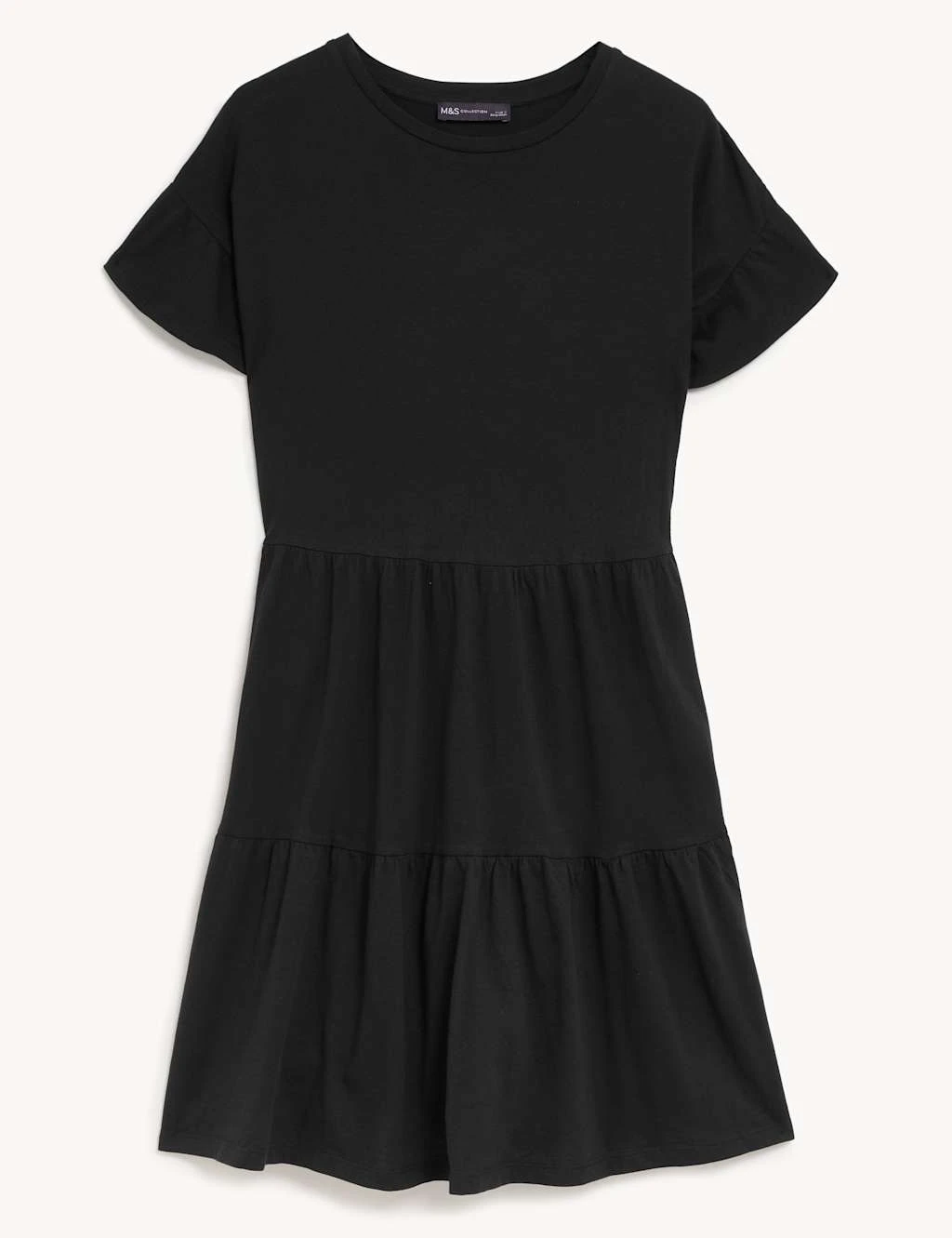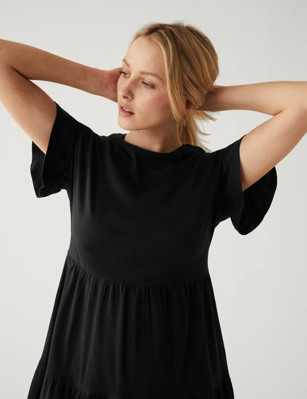 This mini dress is crafted from pure cotton for a breathable feel. It’s cut in a regular fit with short sleeves and a round neck for versatile wear. The tiered skirt adds a sense of playfulness.