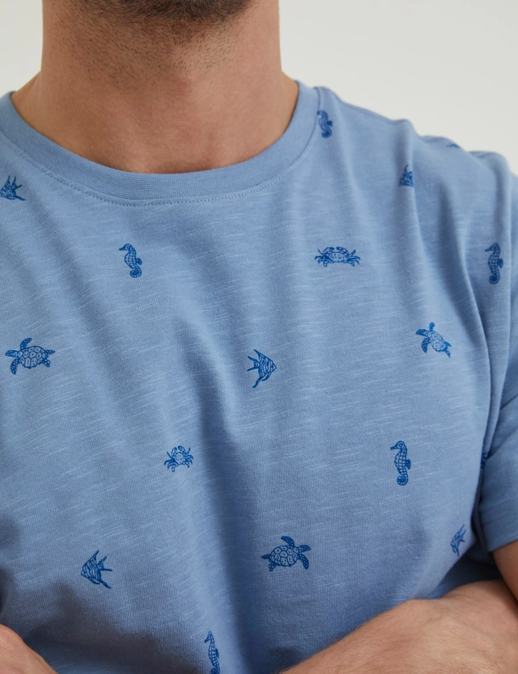 Pure Cotton Sealife Print Crew Neck T-Shirt