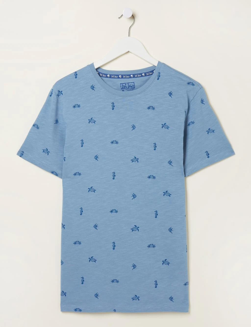 Sea creatures swim across the marl-textured background of this pure cotton t-shirt from FatFace. It’s designed in a comfortable regular fit, with short sleeves for an airy feel. The intricate print features illustrations of turtles, seahorses and other marine life. Inside the crew neckline, a contrasting branded trim adds a neat finishing touch.