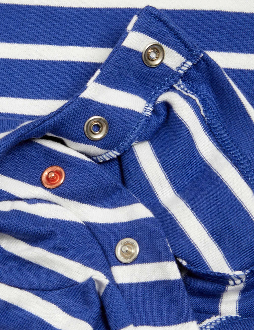 Everyone will smile when they see these pure cotton dungarees. Adjustable straps, buttons on the sides and poppers at the nappy area make changing time easier. As well as the bold ‘Smile’ slogan, they feature a standout striped print.