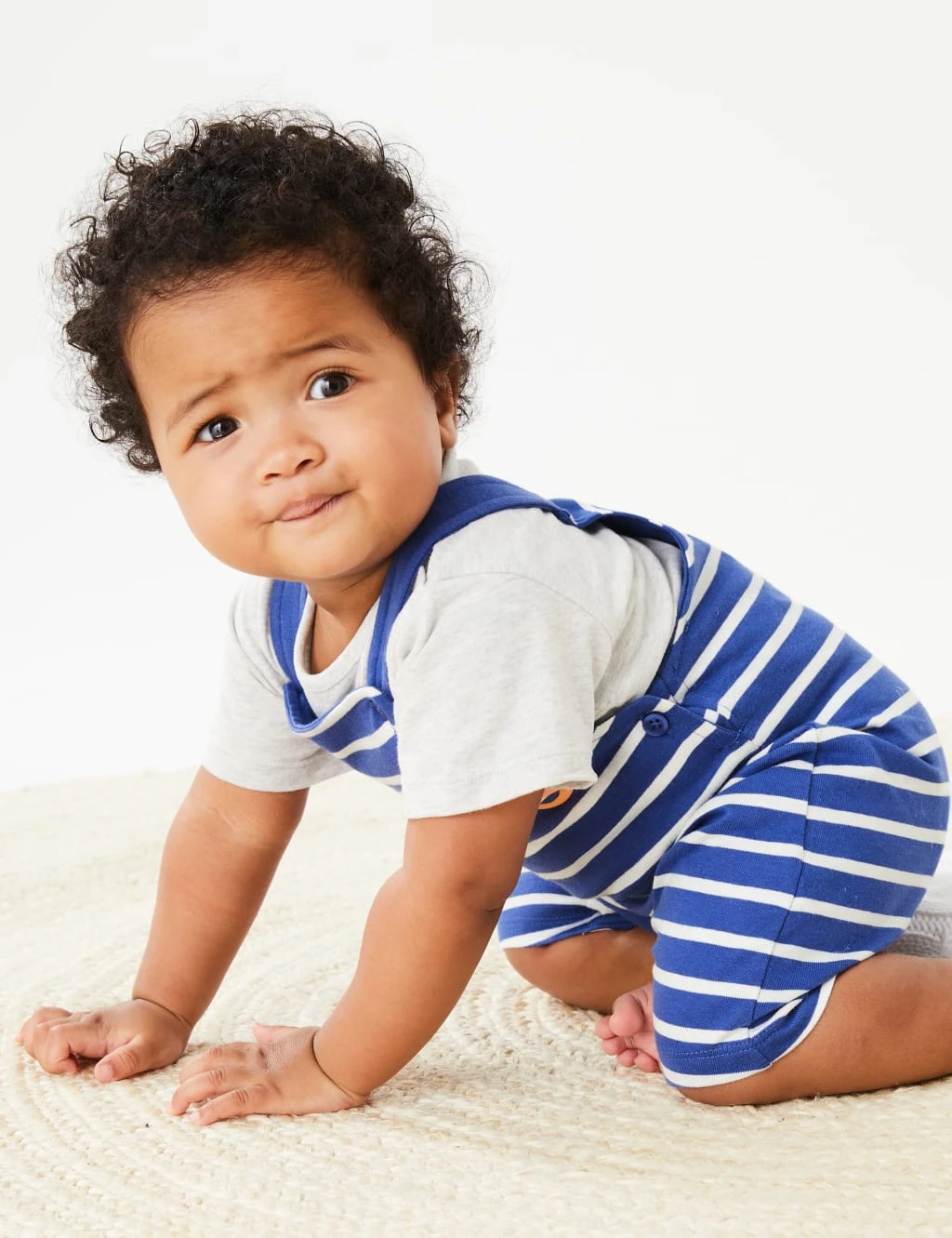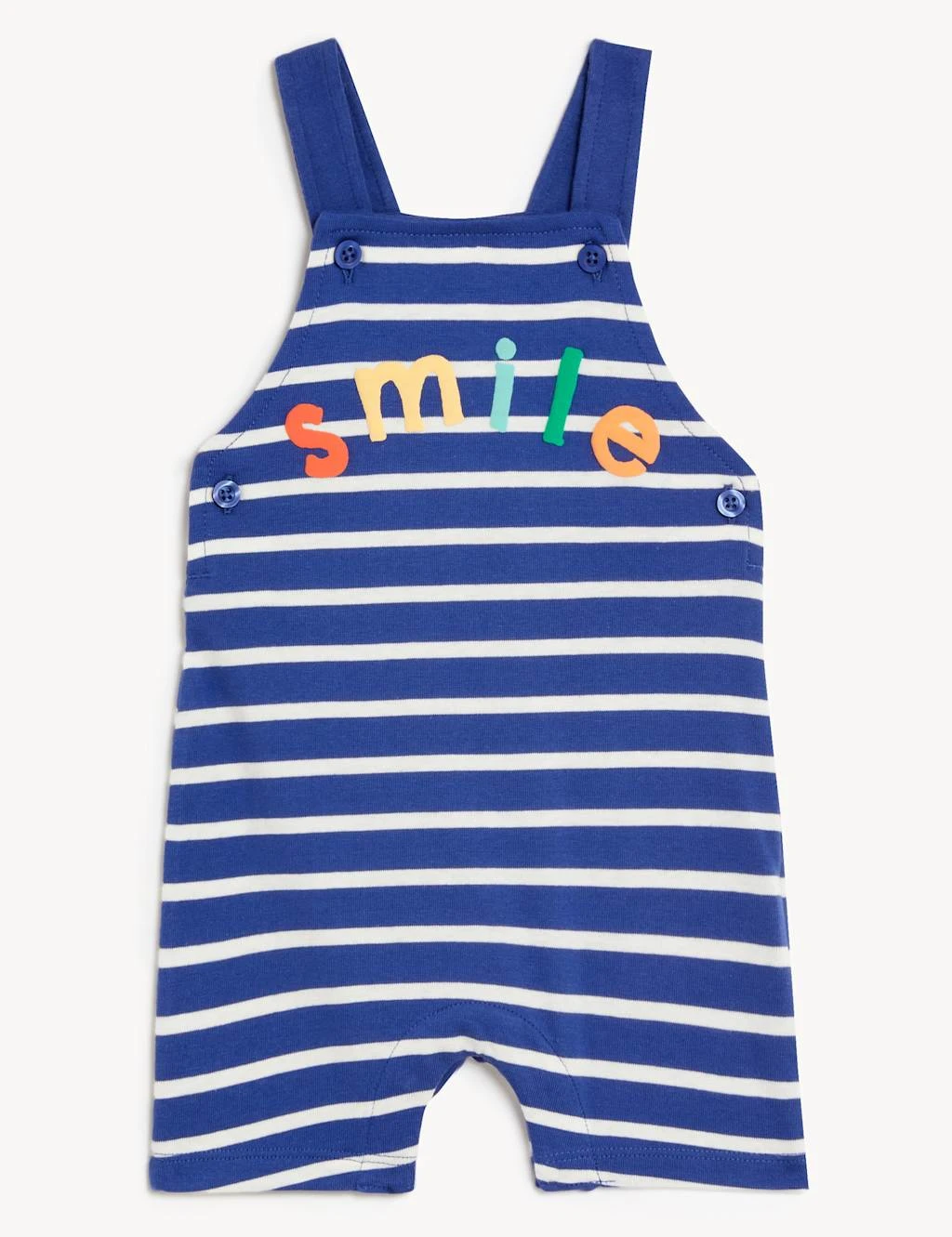 Pure Cotton Smile Slogan Striped Dungarees (0-3 Yrs)