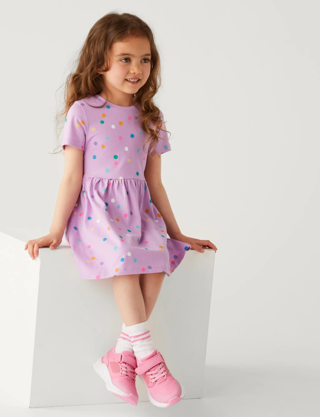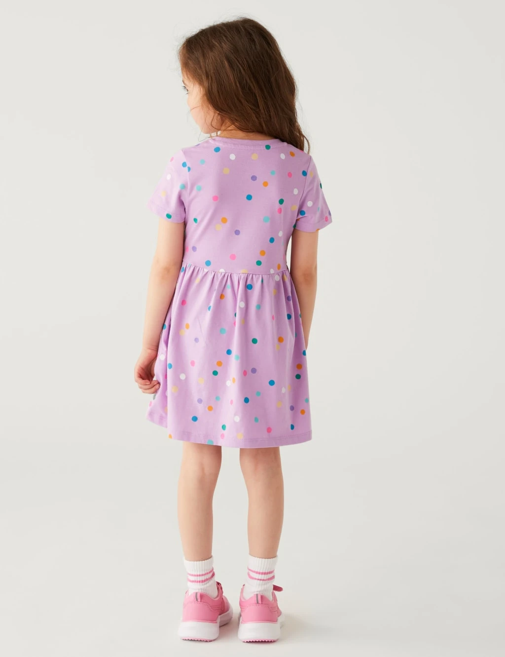 Pure Cotton Spotted Dress (2-8 Yrs)