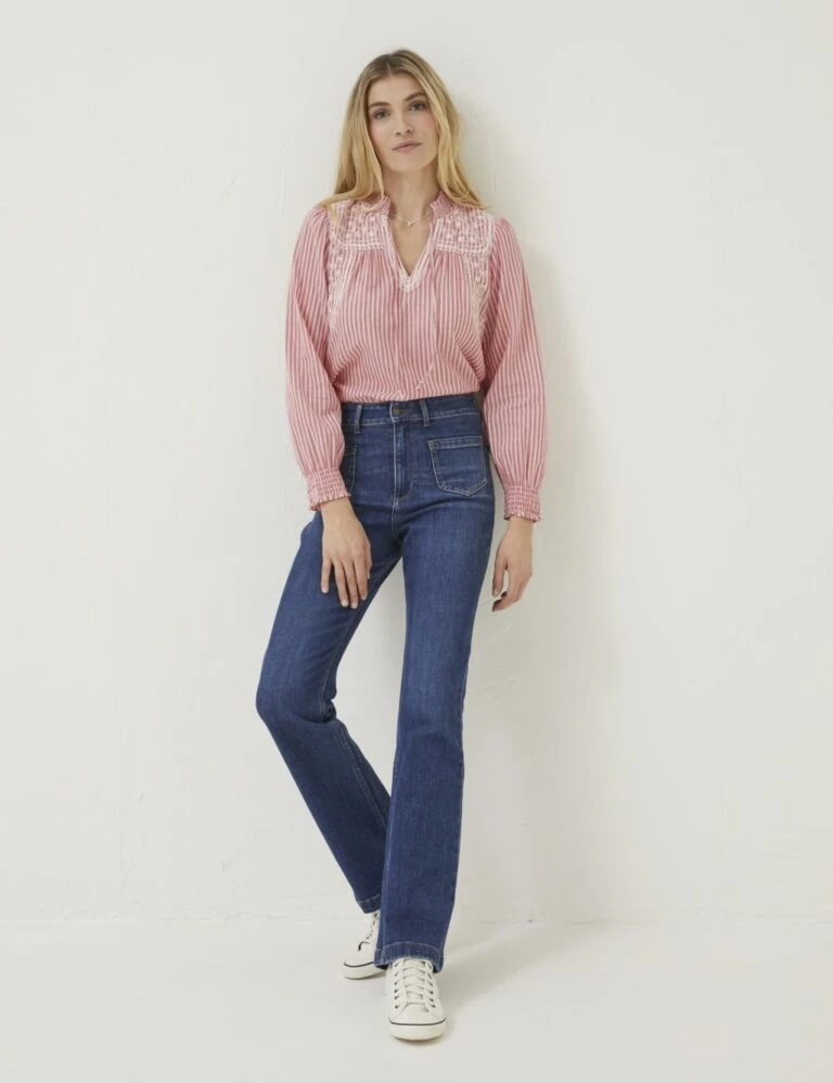 For modern boho-inspired style, turn to this pure cotton blouse from FatFace. It’s made to a classic regular fit, with a frilled notch neck that you can wear open or closed, thanks to a tie fastening. The striped design is elevated with embroidered detailing around the chest.