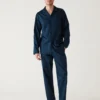 Feel cool and light throughout the night in these breathable pure cotton pyjamas. Comfy regular fit set, comprising a short-sleeved striped top and long bottoms with an adjustable drawstring waist, a mock fly and handy side pockets.