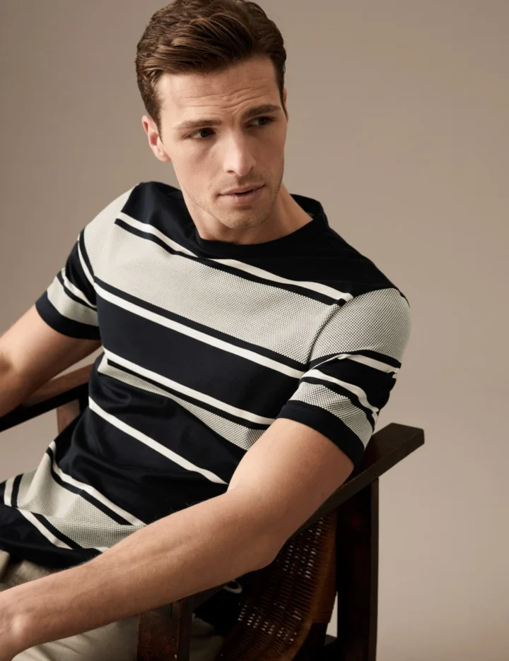 Bring a classic look to your casualwear with this pure cotton t-shirt from our Autograph range. It’s cut to a smart slim fit, featuring a neat crew neck and laid-back short sleeves. The timeless striped print is textured for a premium feel.