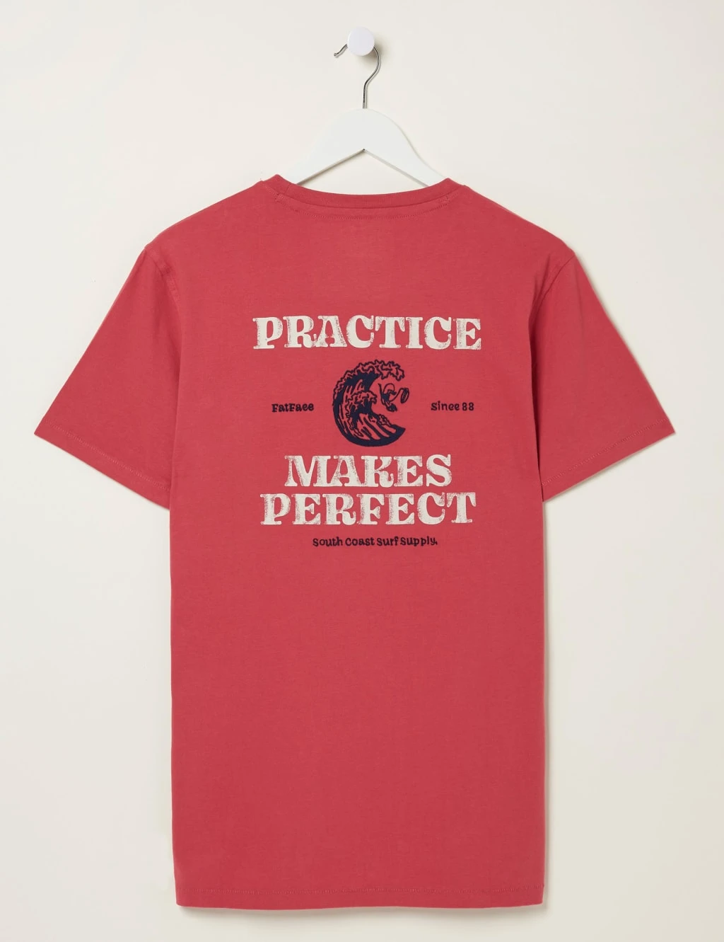This pure cotton t-shirt by FatFace captures laid-back surfer style. It’s cut in an easy regular fit for a comfortable feel. A wave logo features on both sides, plus there’s a bold slogan on the back that reads “Practice makes perfect”. Branded trims inside the crew neck add a refined finishing touch.