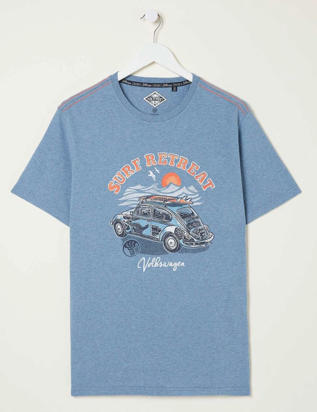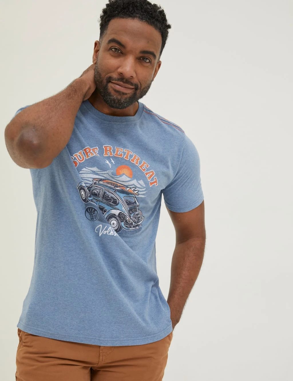 For the ultimate laid-back look, choose this surf-inspired pure cotton t-shirt from FatFace. It’s cut to a comfortable regular fit, with a classic crew neck. A bold “Surf Retreat” slogan sits above a vintage-style car graphic. Contrasting stripes on the shoulders and FatFace branding at the back add considered finishing details.
