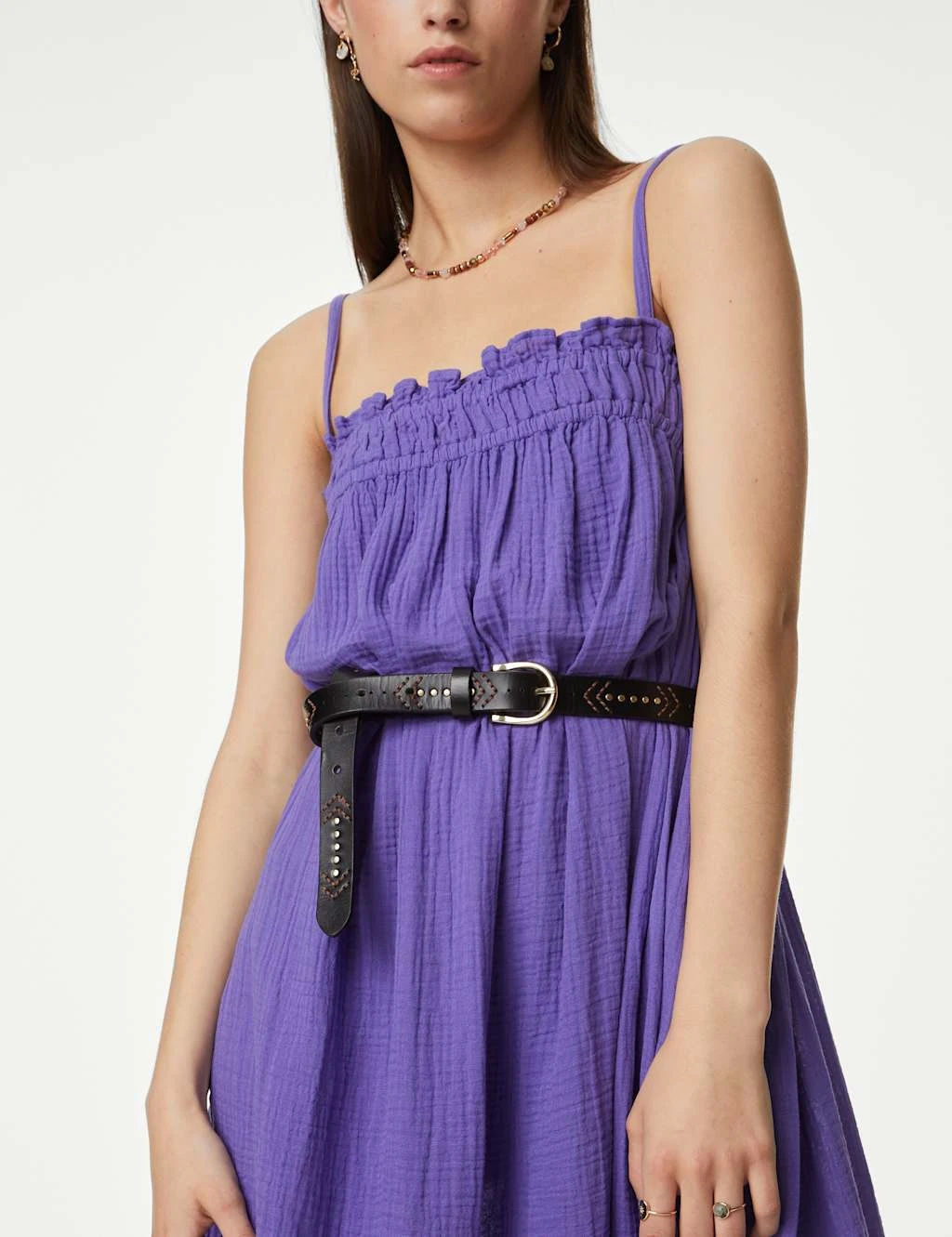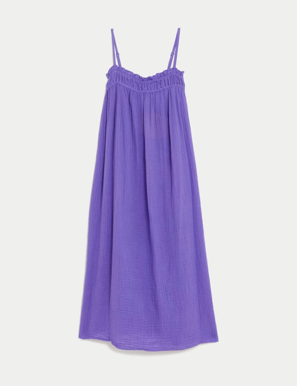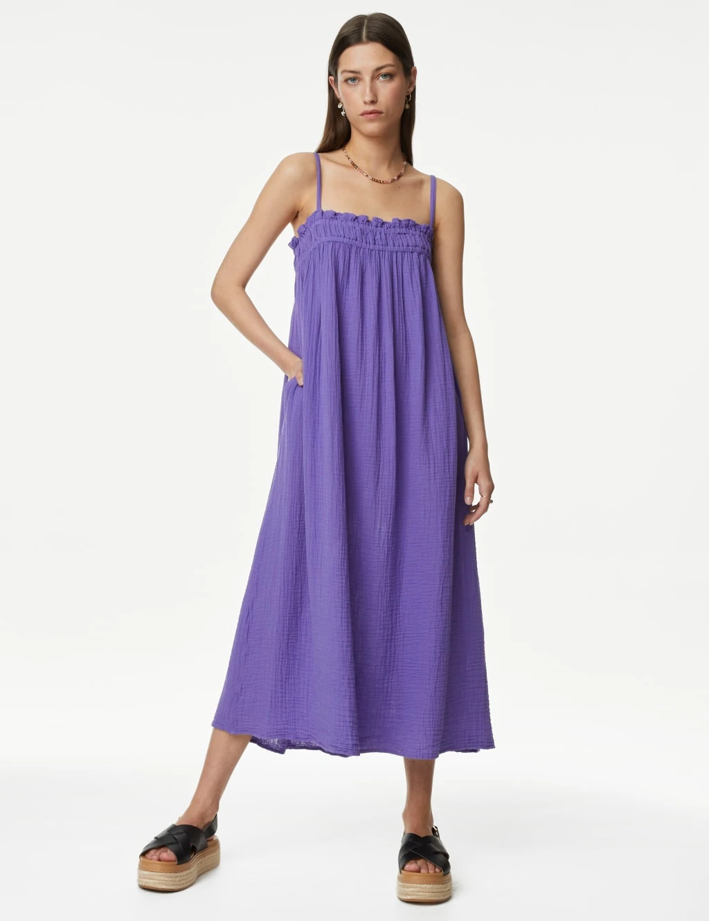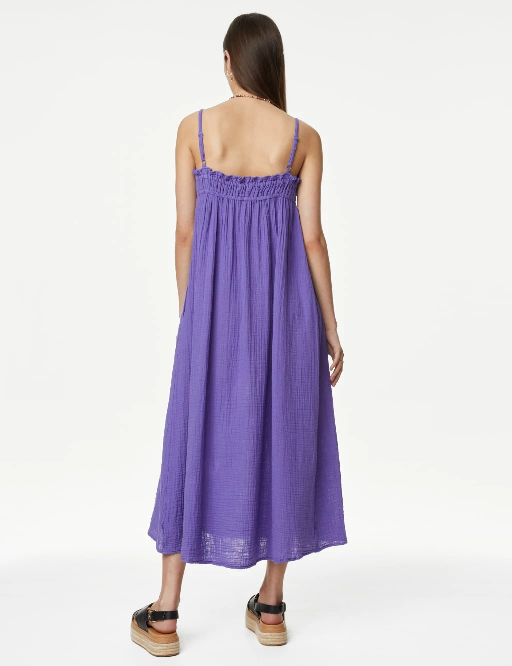 Swing into warmer days in style with this breezy pure cotton dress from our Per Una range. It’s made in an easy relaxed fit to a versatile midaxi length and features adjustable cami-style straps for flexibility. The fabric has a textured finish and there’s a shirred panel at the square neck for comfort. This floaty dress is complete with side seam pockets to store your phone and keys.