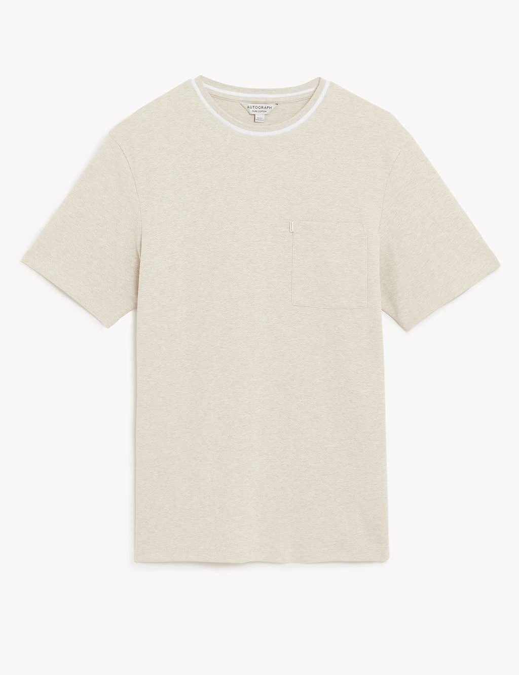 This textured marl t-shirt from our Autograph collection will be a staple of your casual wardrobe. It’s made in a modern slim fit from pure, breathable cotton. A chest pocket with branding adds a stylish touch.