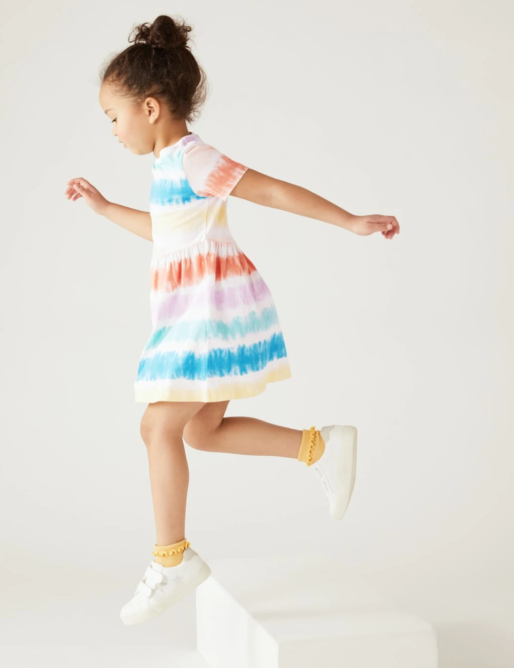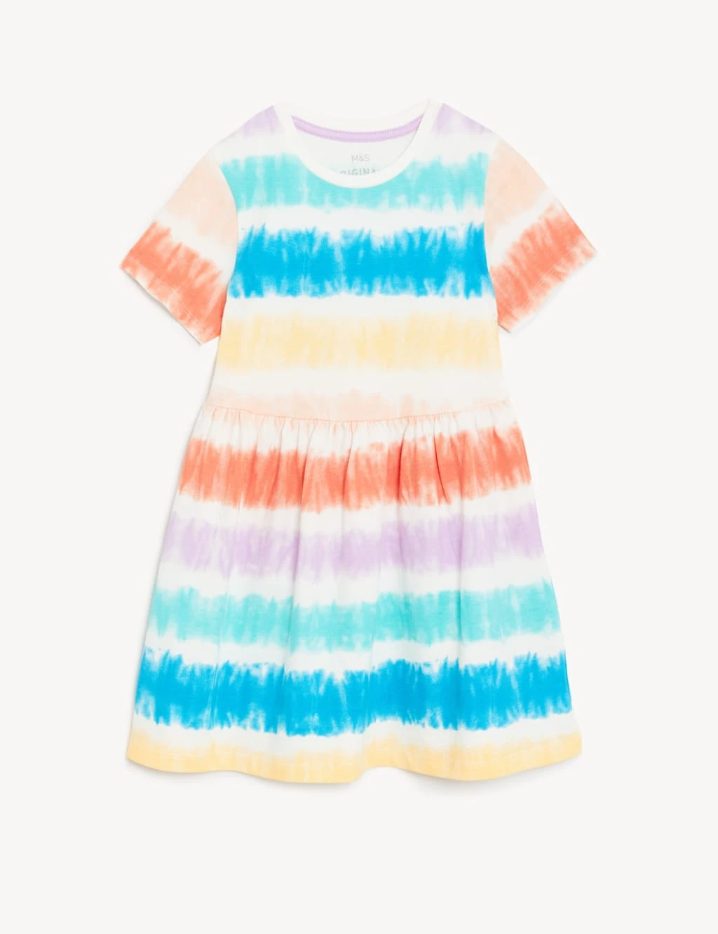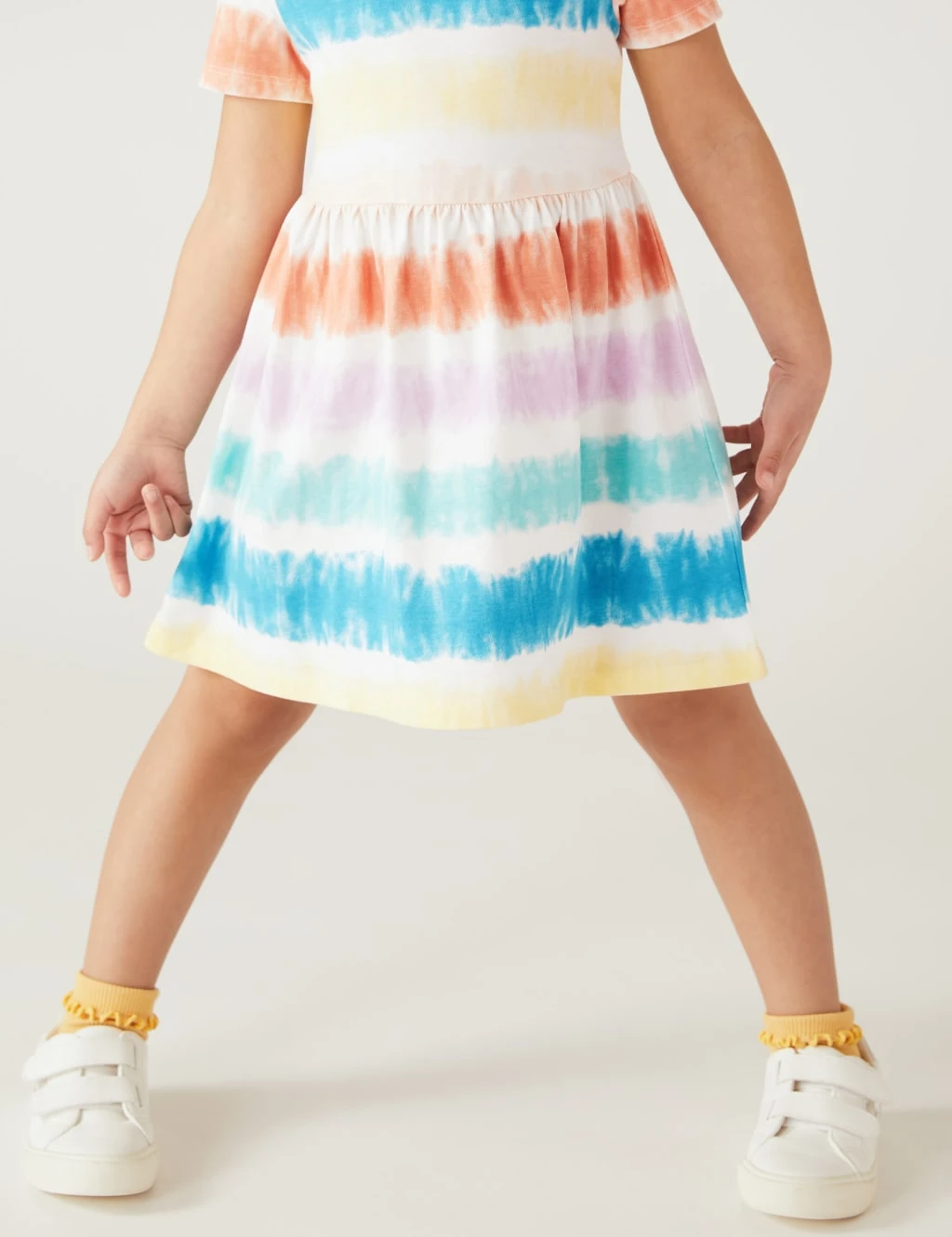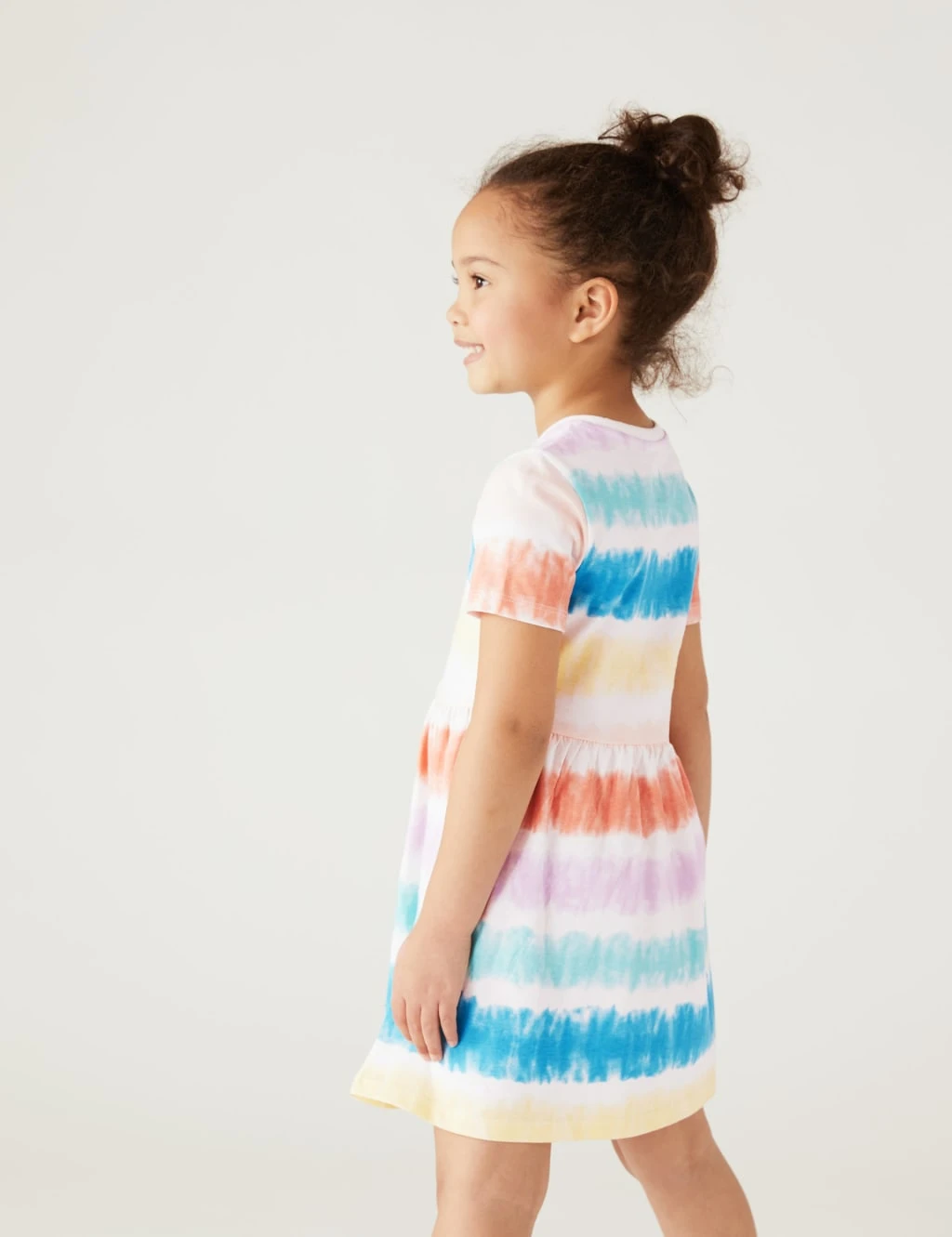 Bring a splash of brightness to their casual wear with this pure cotton dress, featuring a colourful tie-dye print. Easy regular-fit design with a neat round neck and breezy short sleeves. Part of our 3-for-2 offer.