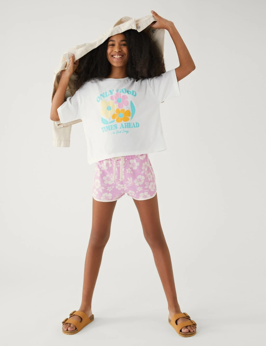 Pure Cotton Tropical Print Shorts (6-16 Yrs)