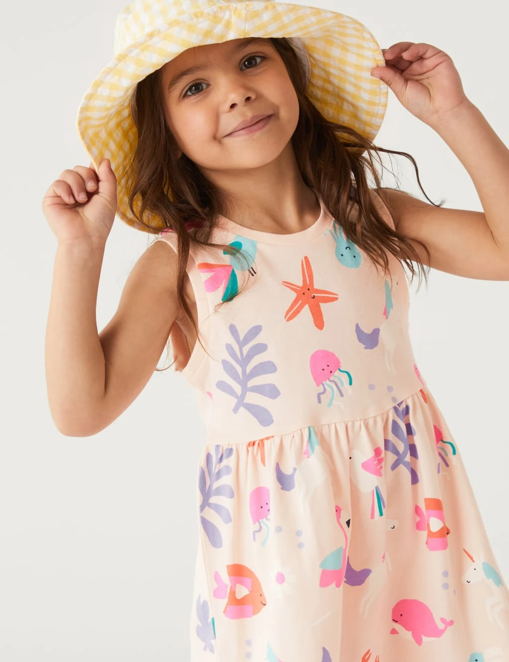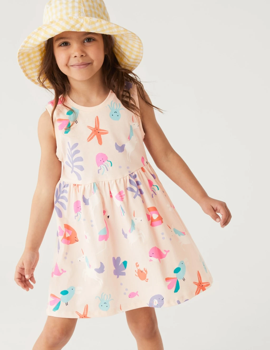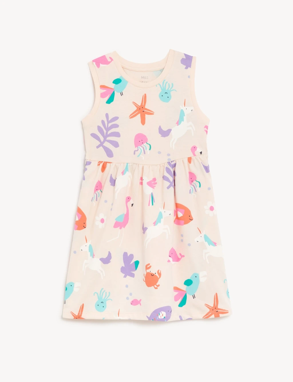 Pure Cotton Unicorn Print Dress (2-8 Yrs)