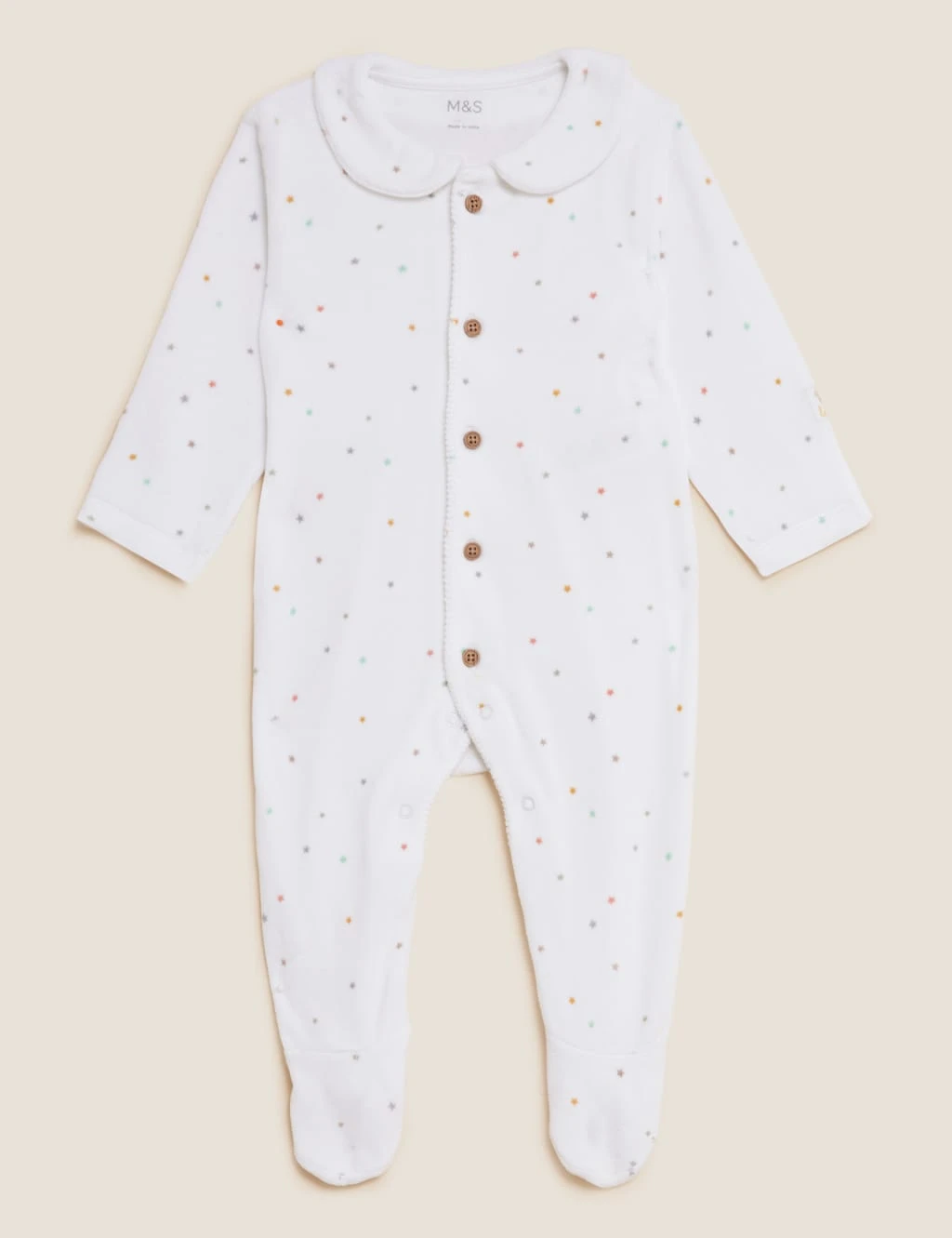 Pure Cotton Velour Star Sleepsuit (7lbs – 1 Yr)
