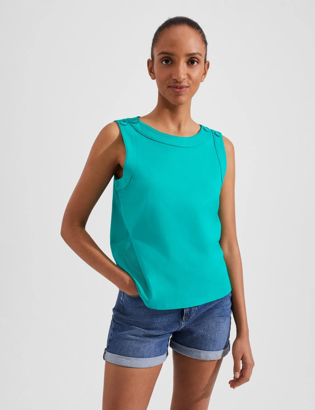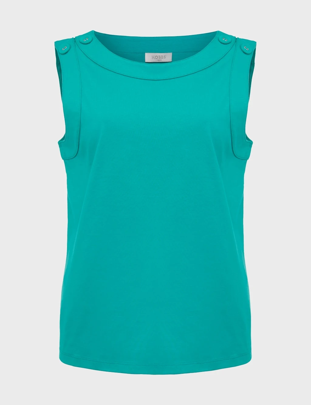 Mix up your casual looks with this sleeveless vest top from Hobbs. It’s made in a comfy regular fit from breathable pure cotton. The round neck adds elegance, while button details on the shoulder provide extra style points.