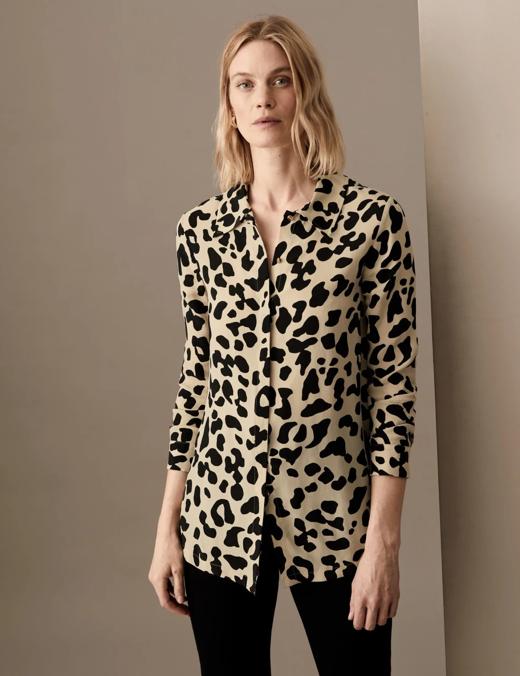 Go for a bold look in this pure cupro shirt from our Autograph collection, featuring a vibrant animal print. It’s designed in an easy regular fit with button fastenings for a classic look. The collared neckline adds an extra smart touch to this stylish piece.