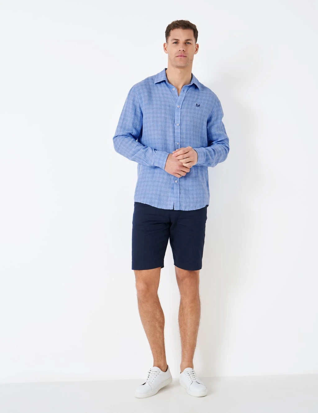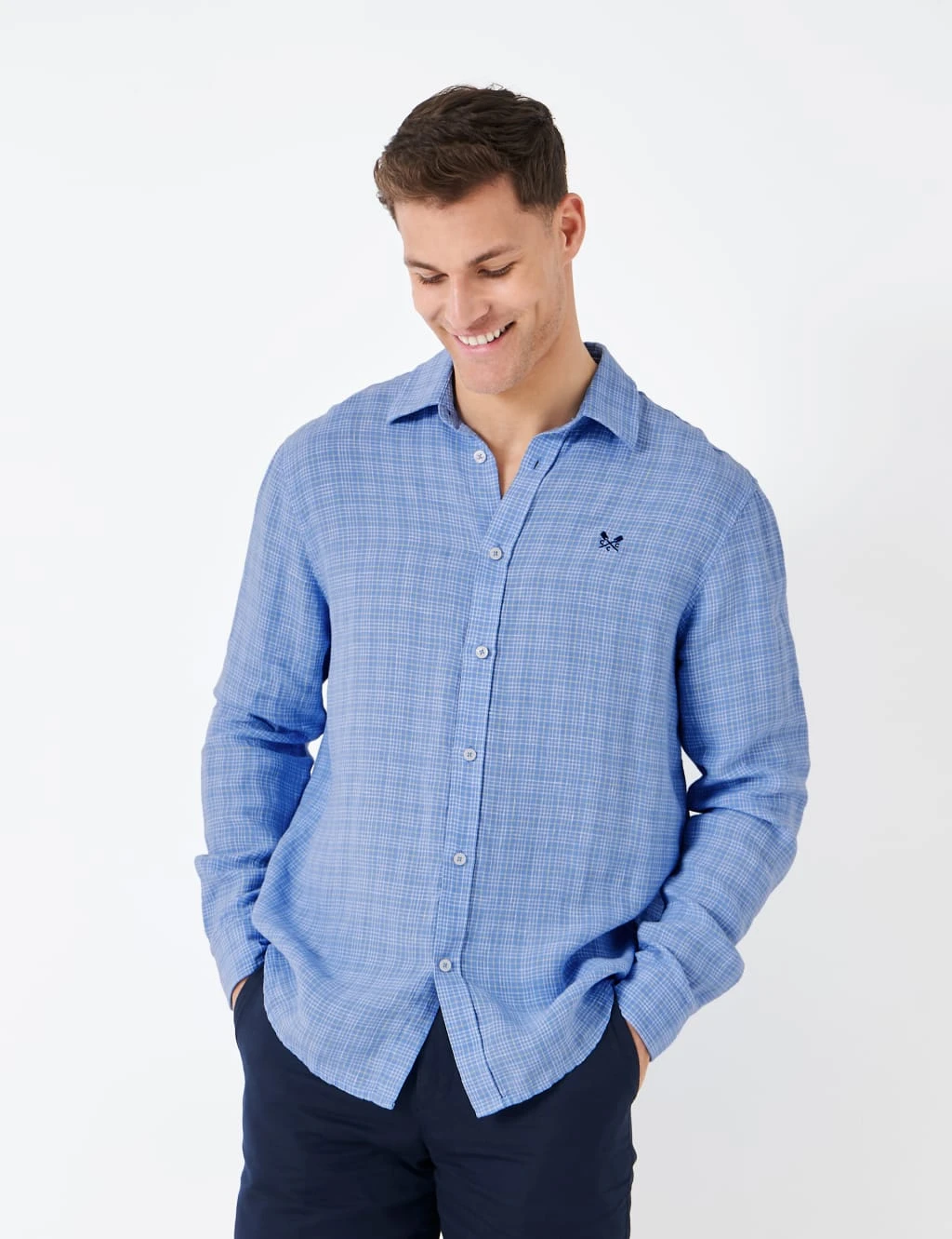 Look smart on warmer days in this pure linen shirt from Crew Clothing. It’s made in a timeless regular fit with rounded, single-button cuffs and a refined collared neck. This button-through style features a tonal checked design and is finished with signature branding on the chest.