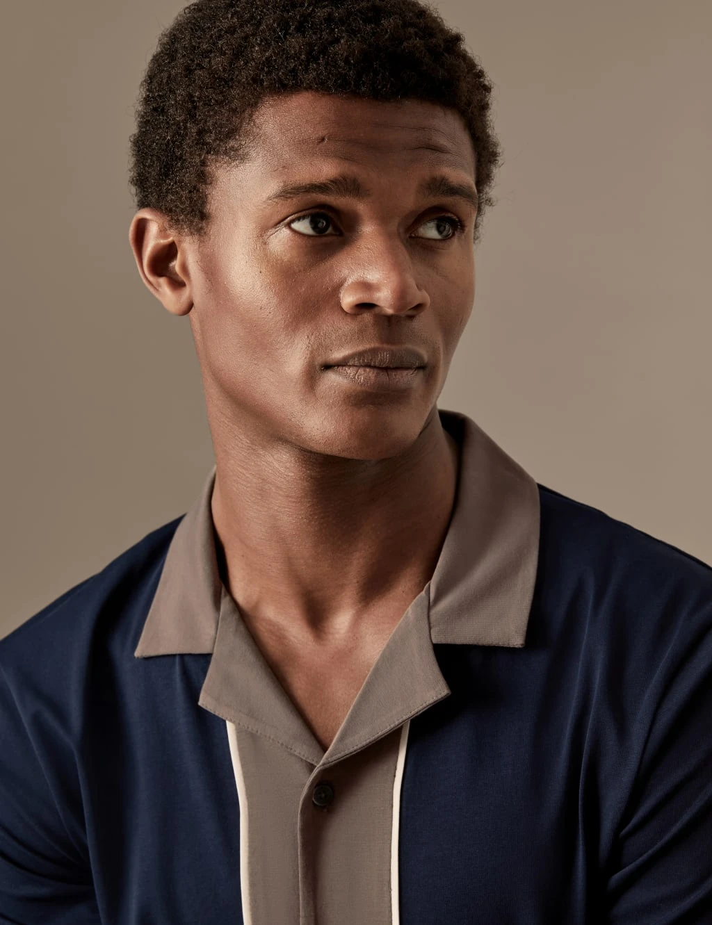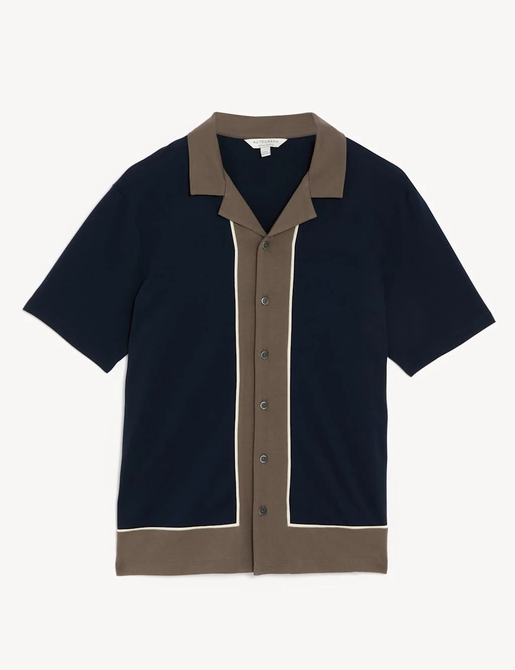 Elevate your smart-casual wardrobe with this colour-block polo shirt from the Autograph collection. The button-up style is made in a comfortable regular fit with a soft open collar and short sleeves. Pure Supima® cotton fabric combines softness with strength.