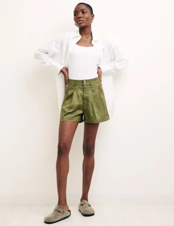 Pure Tencel™ High Waisted Pleat Front Shorts