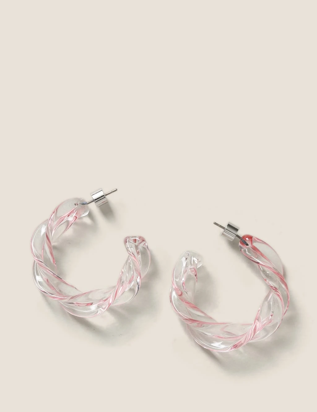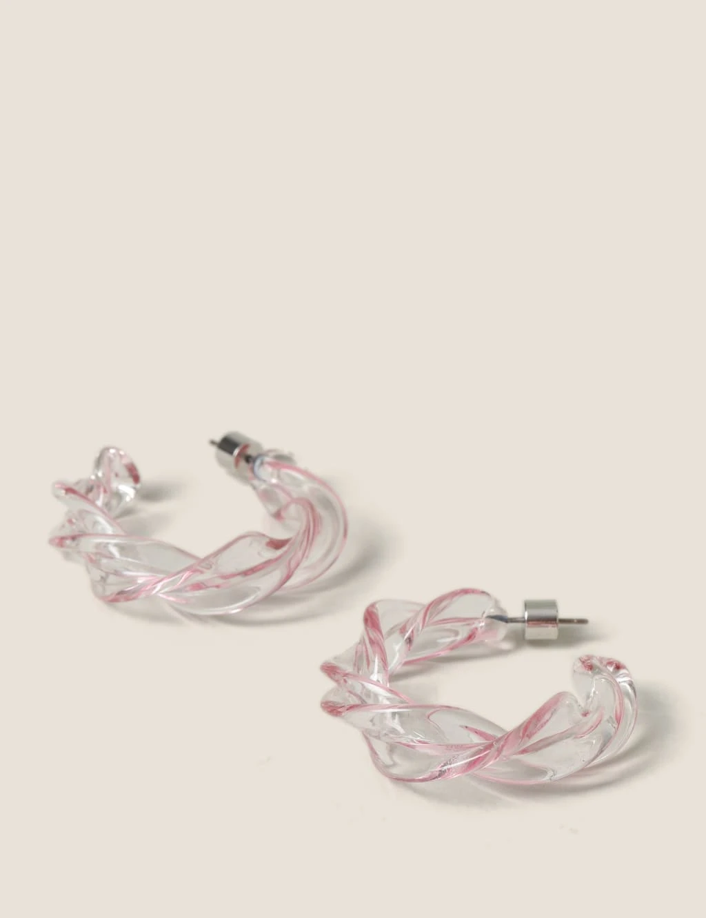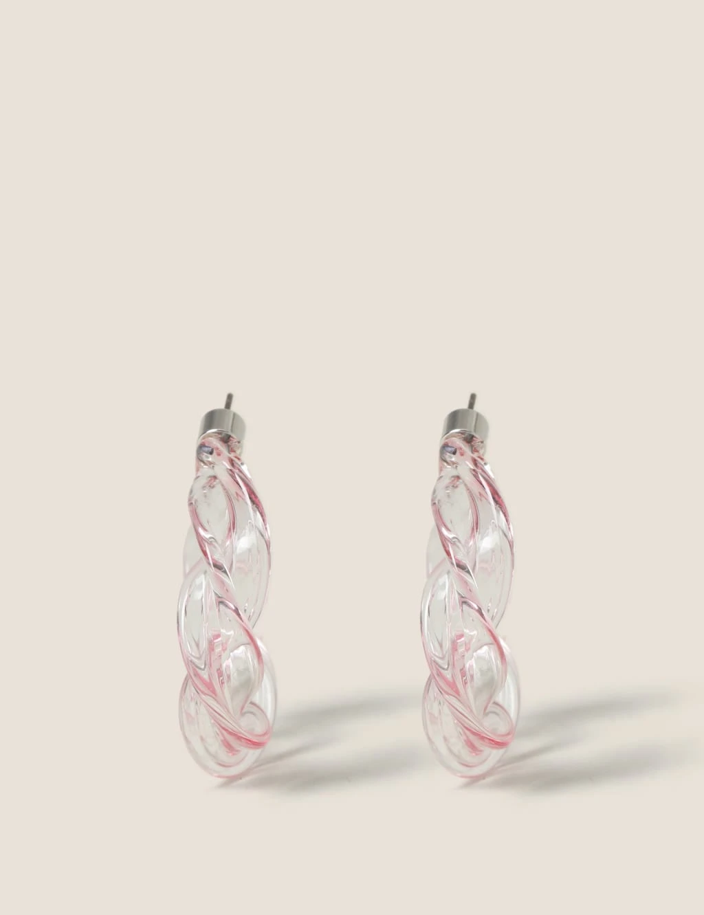 These Large Lilac hoop Earrings have a twist detailing around the whole earring and an open back, in some lights these can also be transparent.