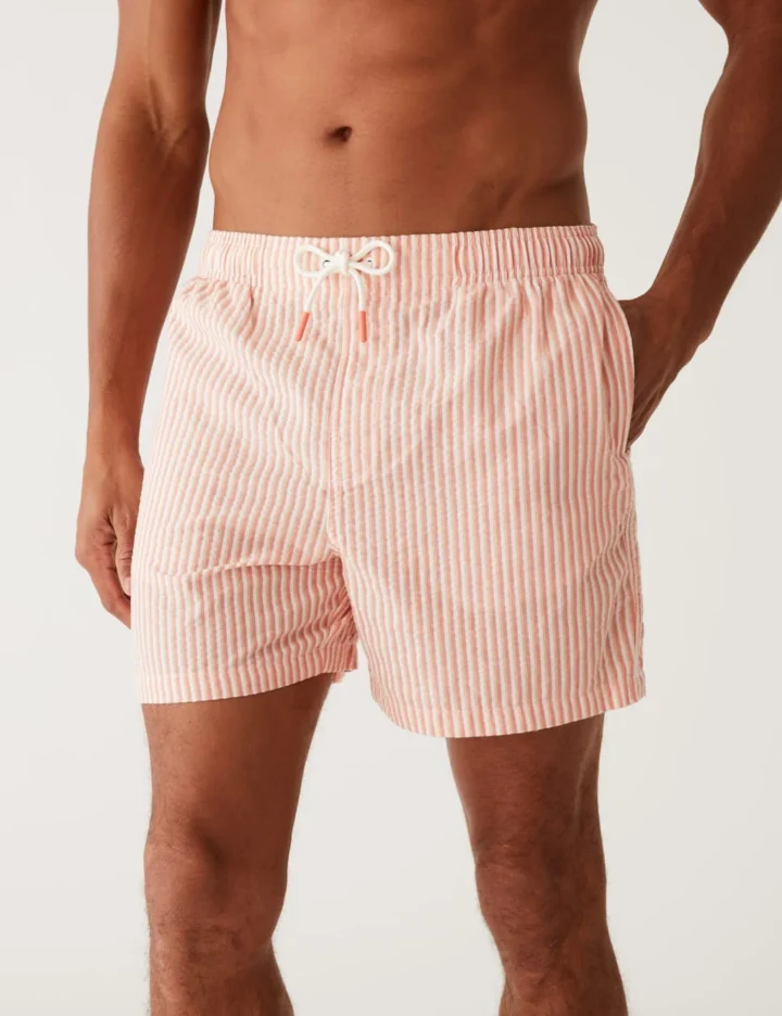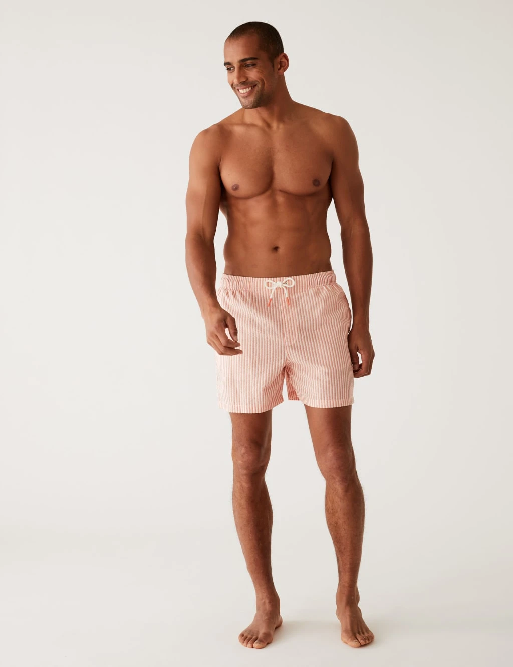 Dive into some classic style with these seersucker swim shorts. Comfy regular fit with an adjustable drawcord and an above-the-knee length. Handy side pockets. Quick-drying fabric means they’re soon ready to wear again. M&S Collection: easy-to-wear wardrobe staples that combine classic and contemporary styles.