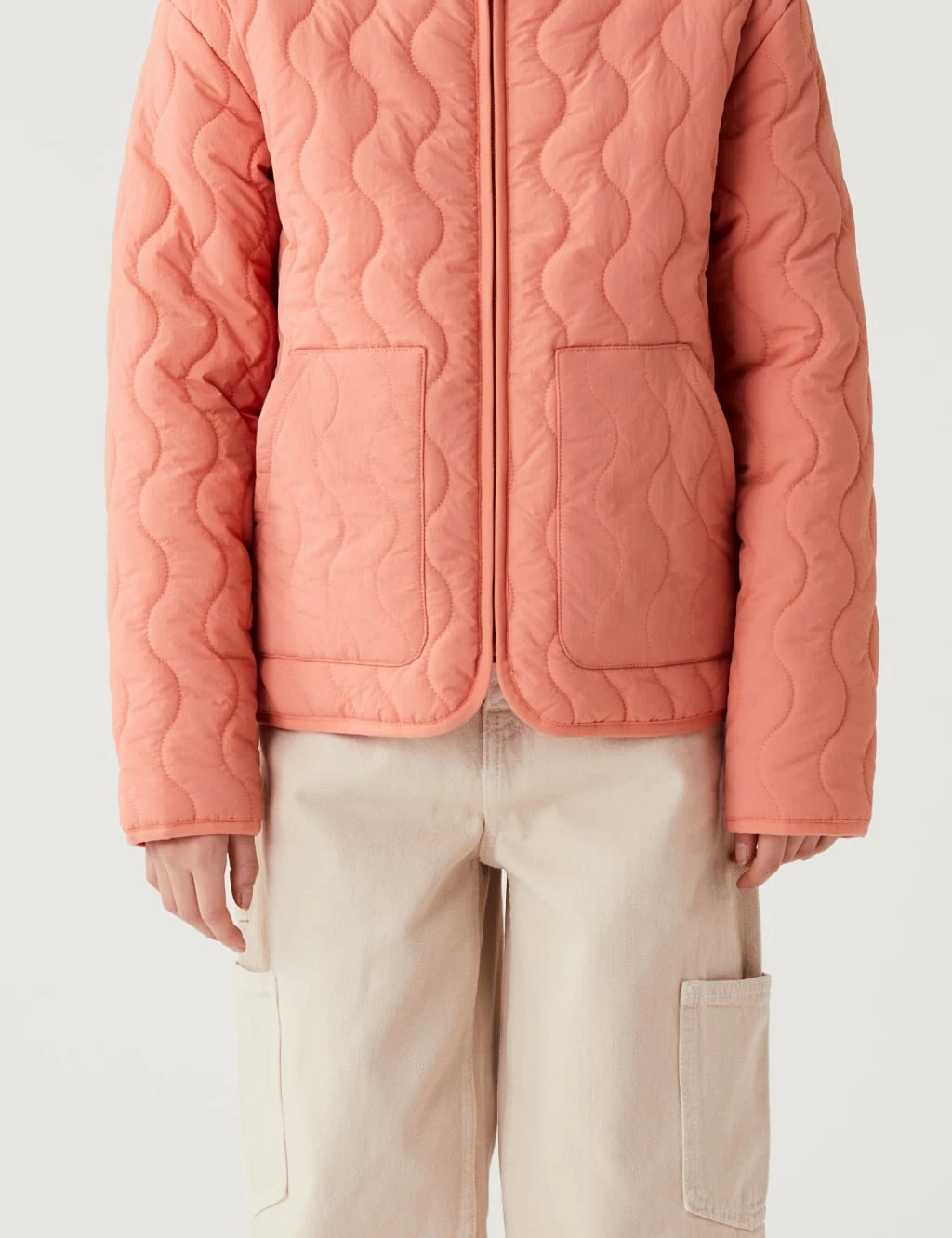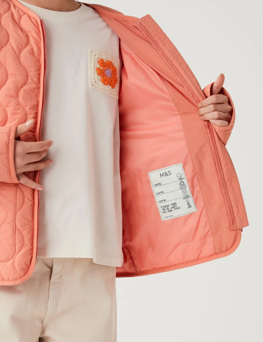 Keep kids snug in this warm quilted jacket. It’s made in a comfy regular fit with a round neck. The zip fastening means it’s super easy to get on and off. Two pockets at the front are perfect for warming hands.