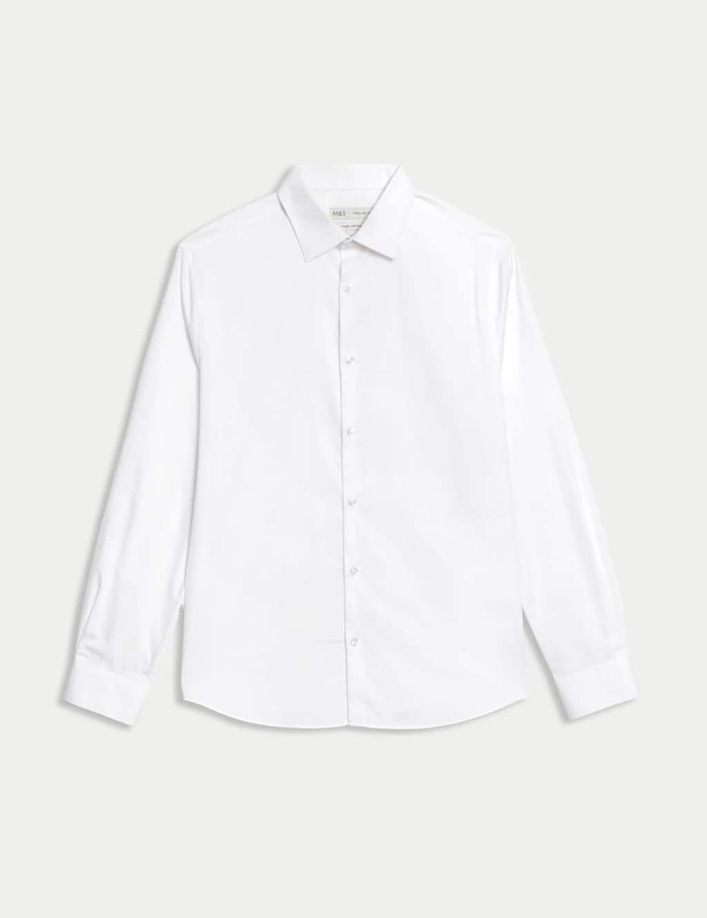 This smart twill shirt is a fail-safe addition to your formal wardrobe. Made from breathable pure cotton and cut to a comfortable regular fit. Refined tailoring with a collared neckline and single cuff. Our easy-iron finish makes light work of laundry days. We only ever use responsibly sourced cotton for our clothes.