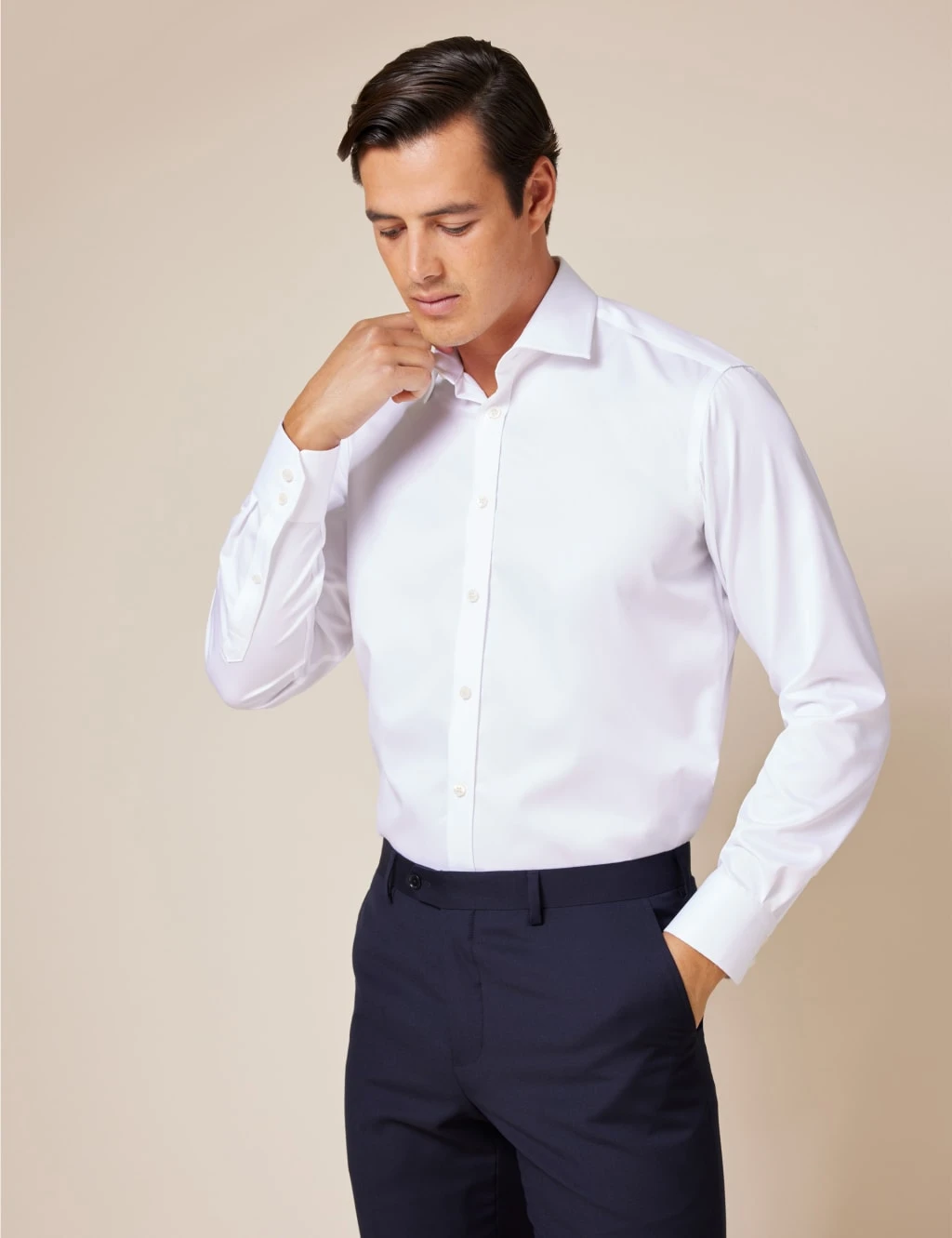 Enjoy premium comfort and quality with this pure cotton shirt from Hawes & Curtis. Crafted from twill fabric for a smooth handfeel and long-lasting quality, this shirt is designed in a regular fit with a classic collar and button-through fastenings. It’s finished with handy non-iron technology to keep your shirt smooth and crease-free all day.