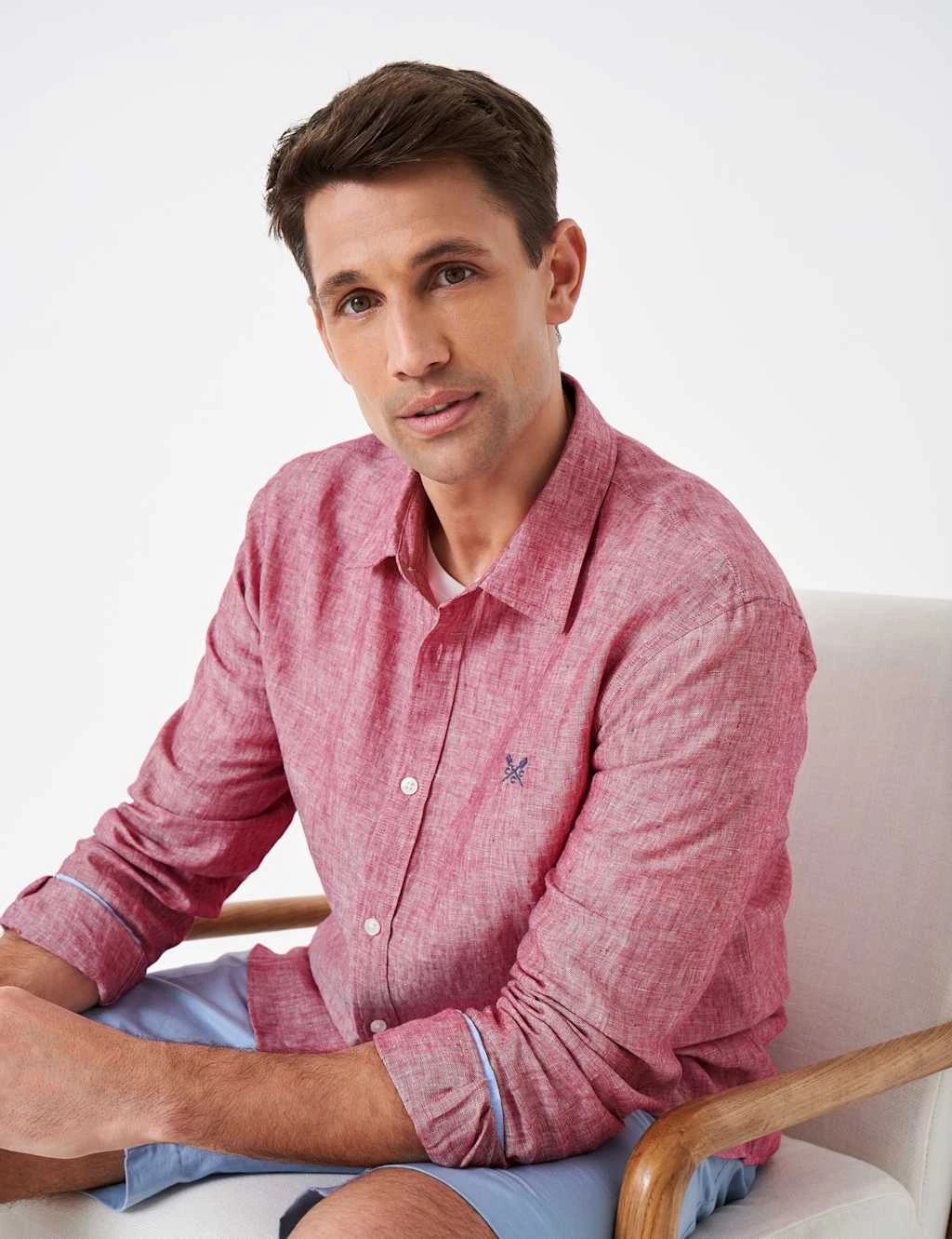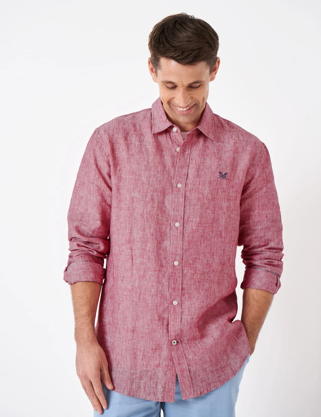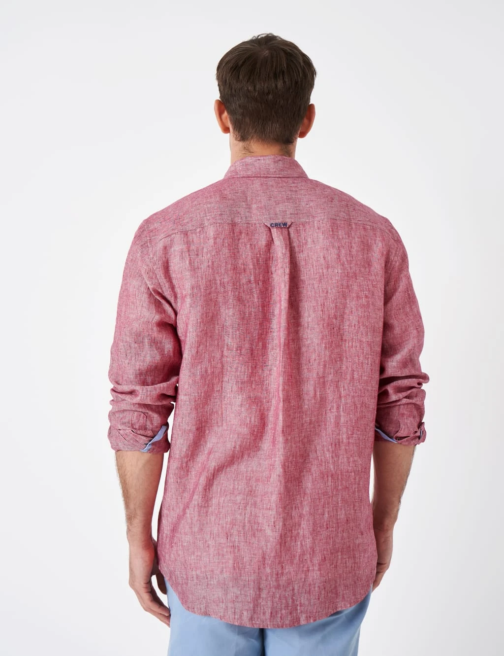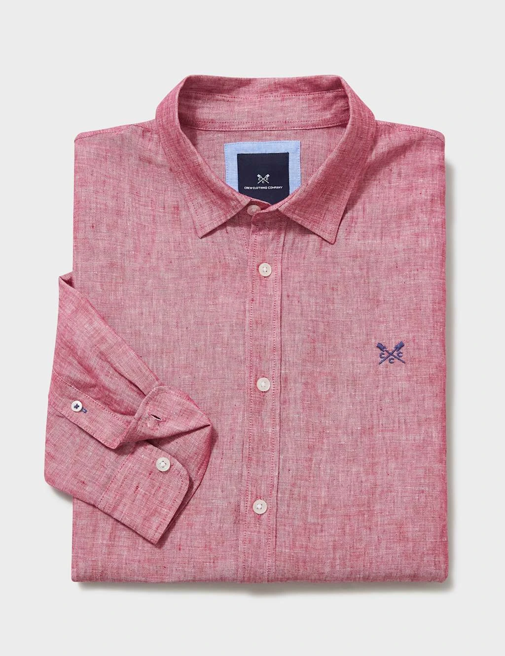 Refine your look with this pure linen dress shirt from Crew Clothing. Made to a regular fit, it’s designed with single cuffs, a collar neckline and a button fastening. For a refined look, an embroidered version of the brand’s crossed oars logo decorates the chest while a branded hanger loop features on the back.
