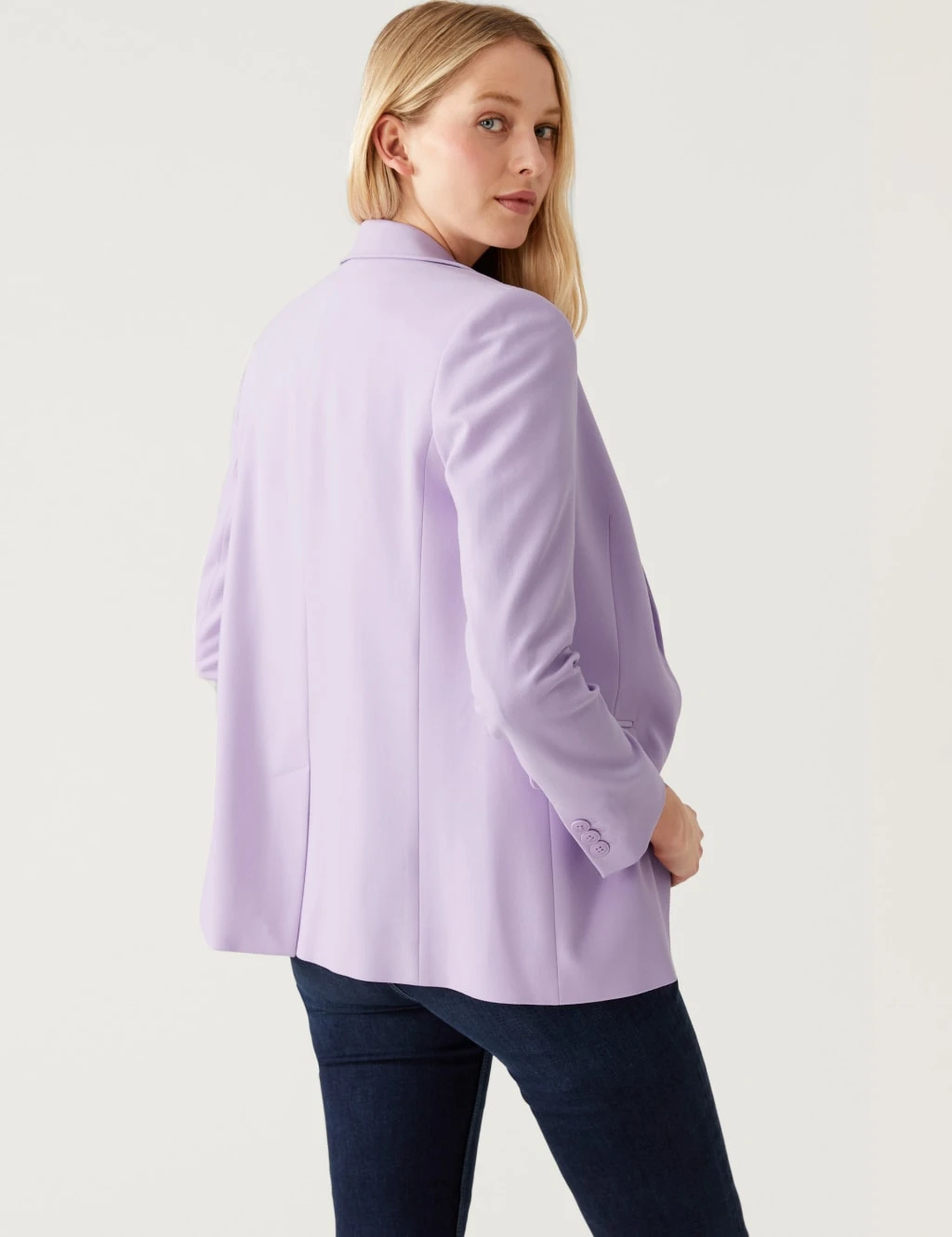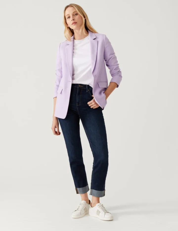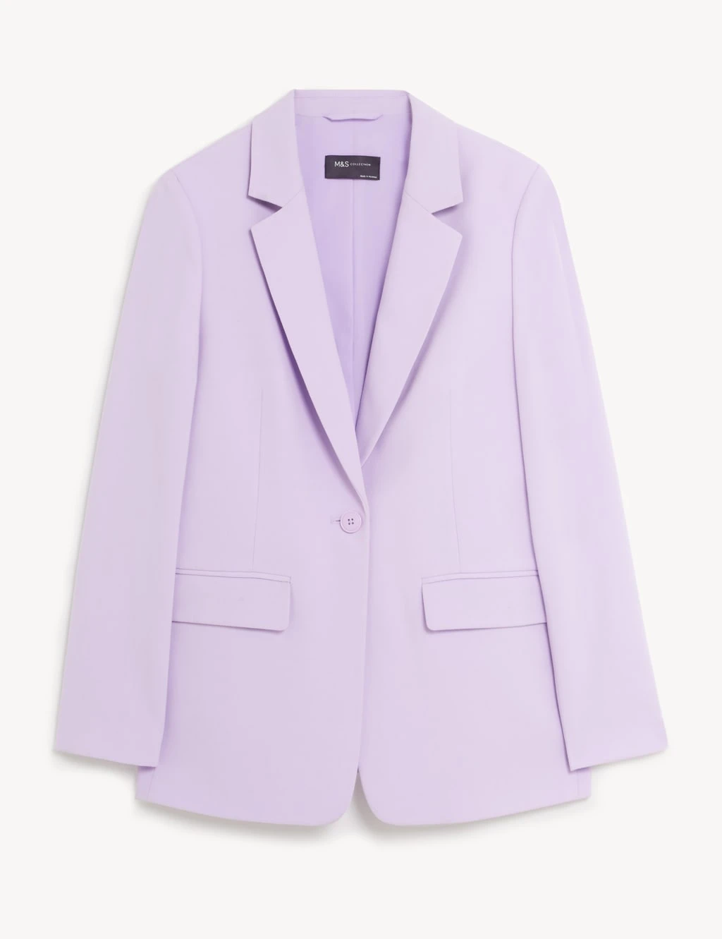 With its single breasted cut, this blazer makes a versatile piece for smart and casual outfits alike. A relaxed fit gives it a semi-structured silhouette, while a single button fastening creates a neat look. Functional buttons on the cuffs add extra detail and flap pockets provide useful storage. This piece is fully lined for a smooth feel. Matching trousers are available.