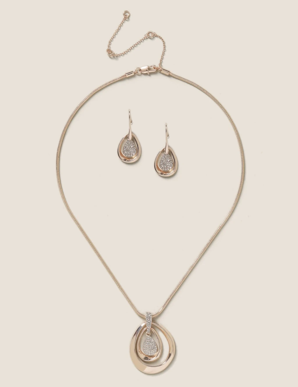 Rose Gold Tone Rhinestone Pendant & Earring Set